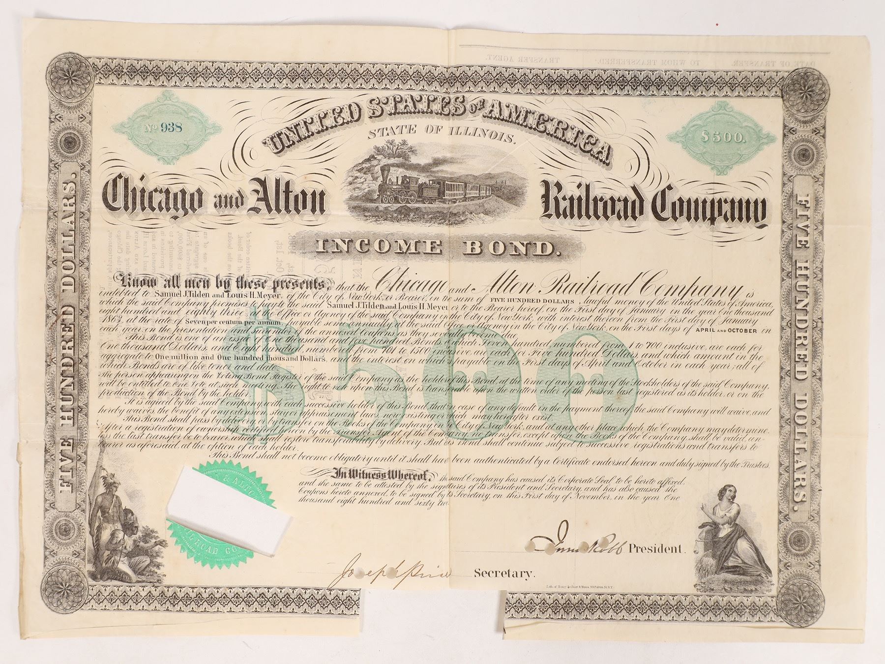 I/C 1862 Chicago and Alton Railroad bond. $500 income. Illinois