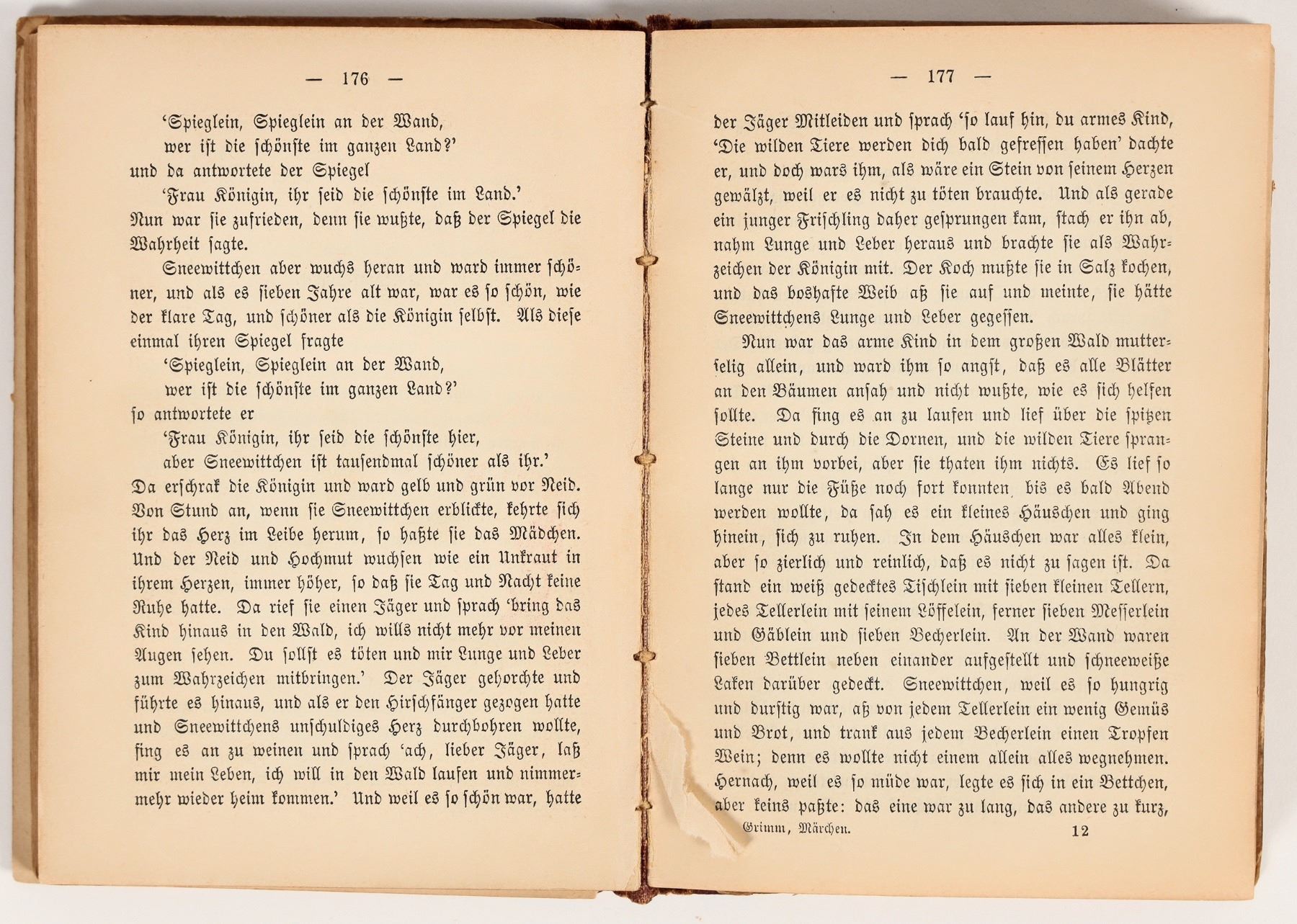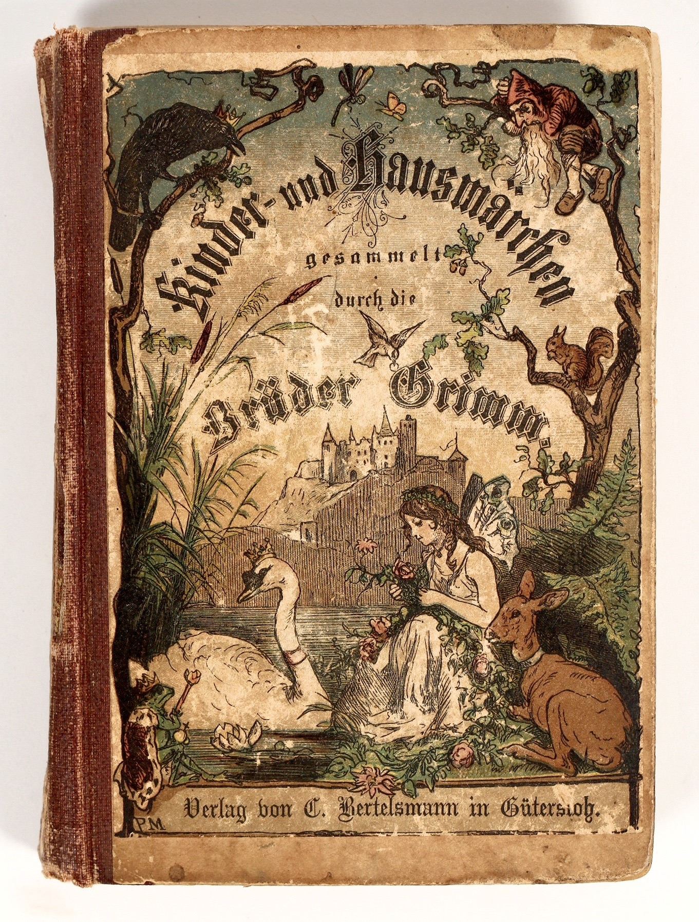 Children And Household Tales The Grimm Brothers or Grimm Fairy Tales. 1887, hardcover, written in German, 311 pages. 4x6". Front cover color illustration, no others in remainder of book. Shows signs of age, internal pages are good condition and readable.