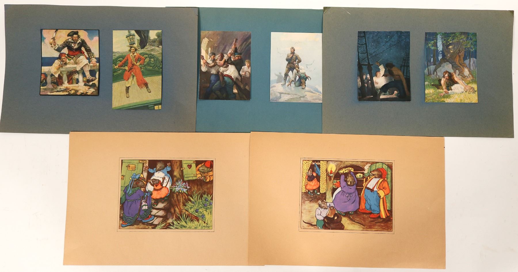 7 smaller prints, 6 with color pirate scenes. Approx 6.5 x 5 inches.
