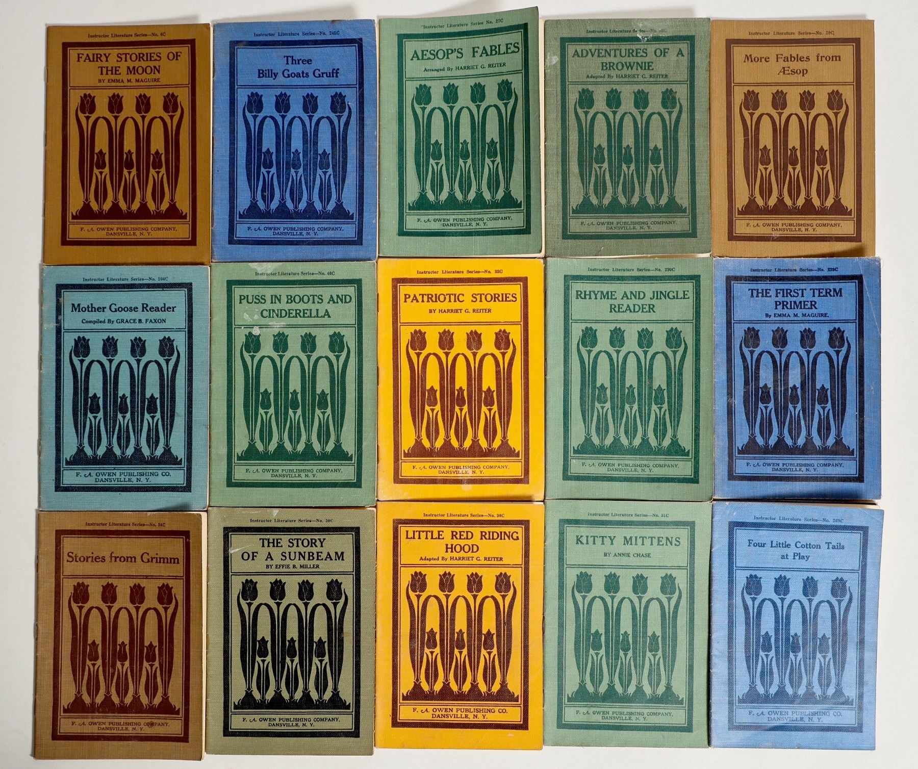 Junior Library Vol. 1, includes 16 of 20 readings in a an elegant hard cover sleeve with golden adornments. Readings are paperback with large font and b/w illustration. Readings' covers are in very good condition with minor playwear. See photograph.