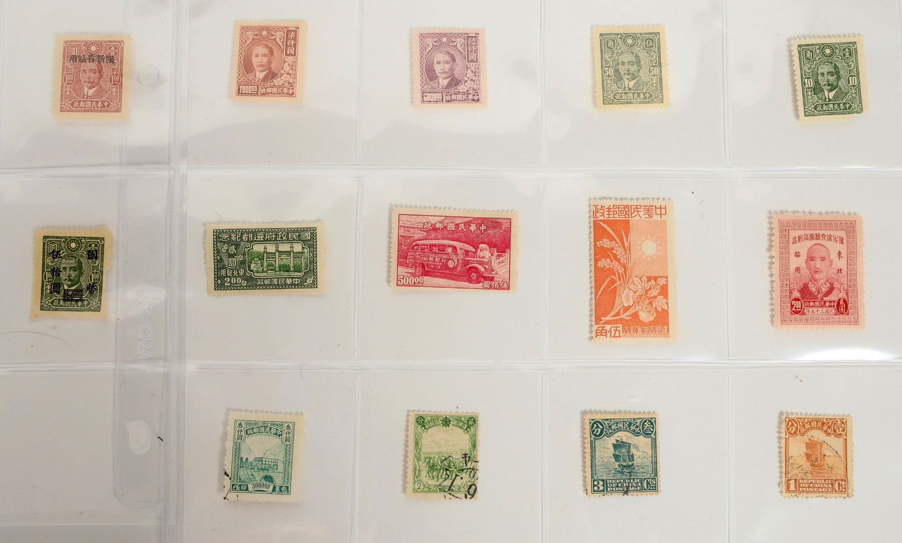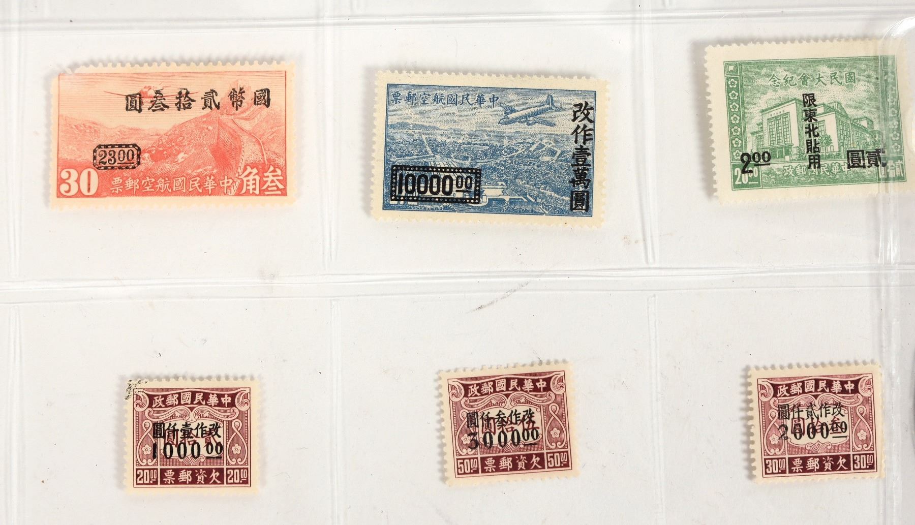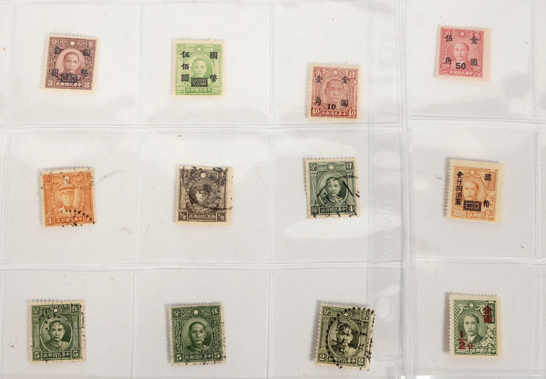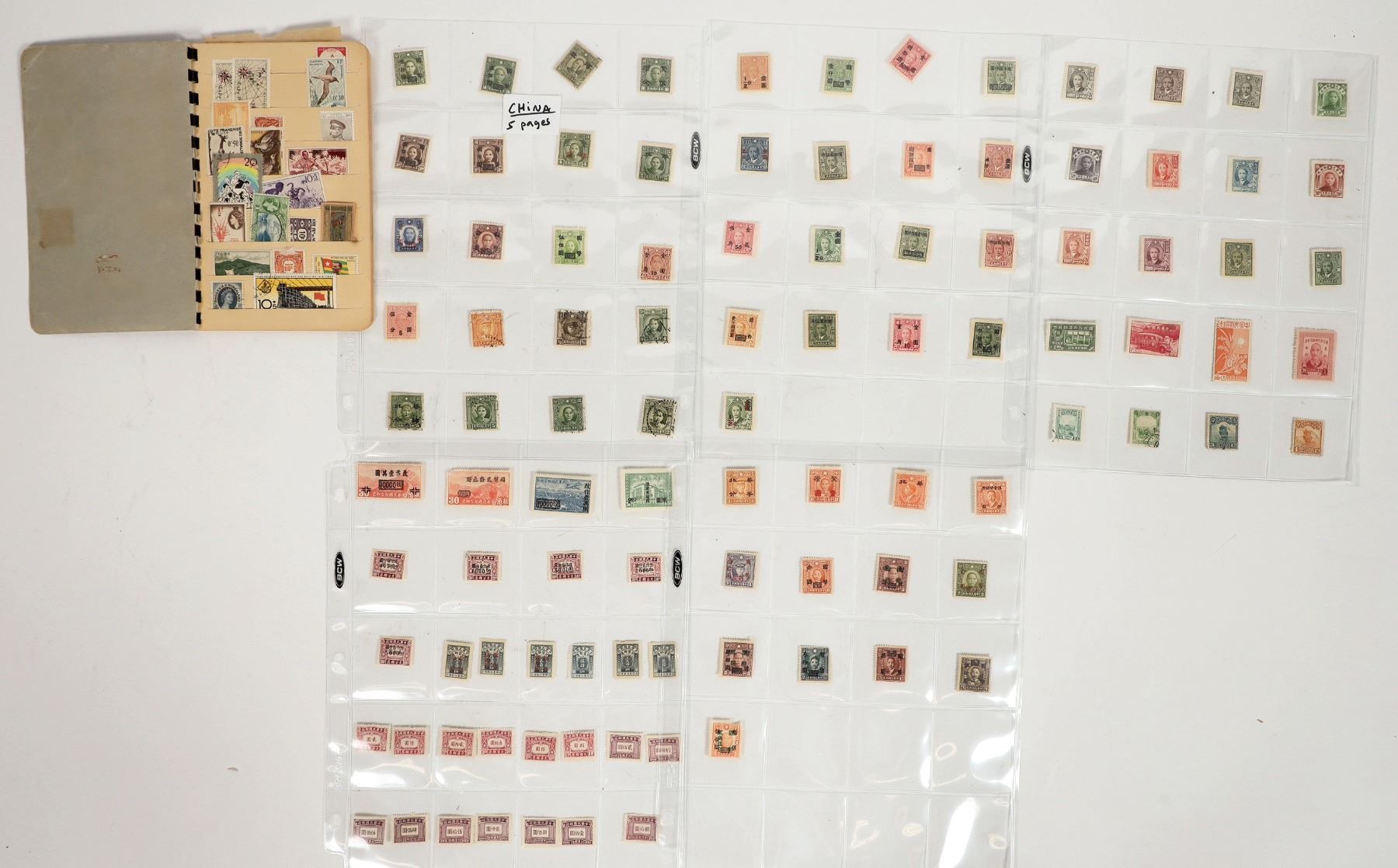 About 90 Chinese stamps, many with overprints. Mint and use, plus about 25 assorted foreign stamps. See photo.