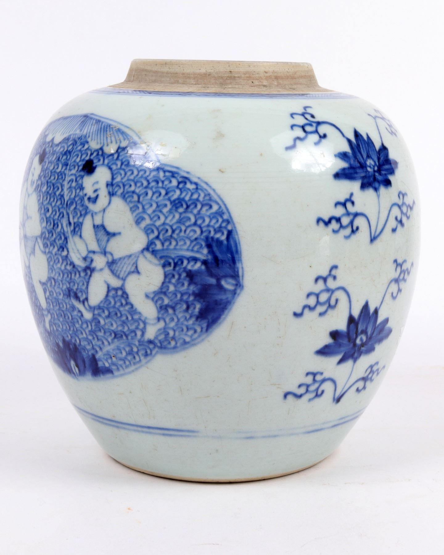Unmarked Chinese blue pot, probably early 20th century. 6.25x5.5". .25" lip chip, otherwise no apparent chips or cracks.