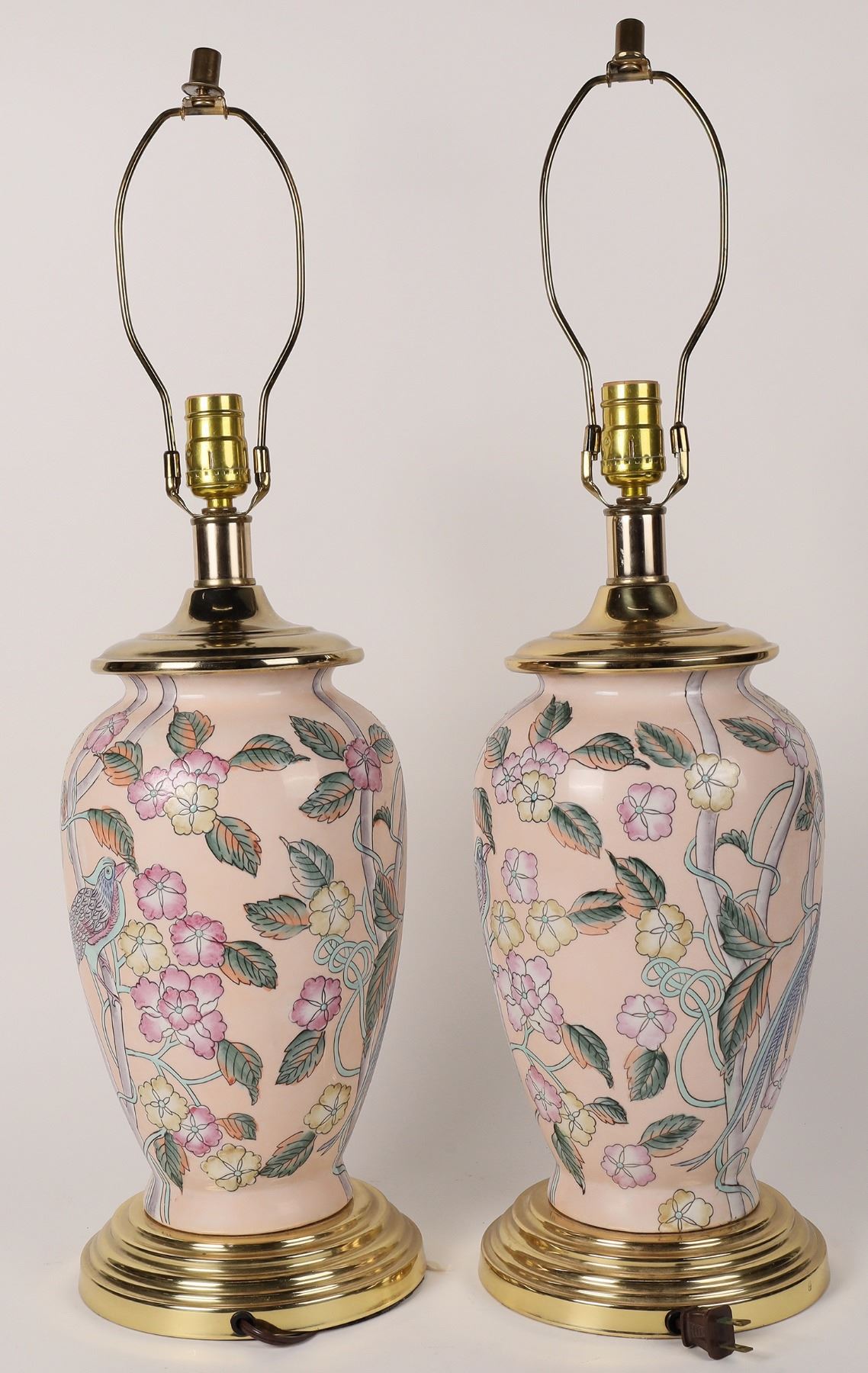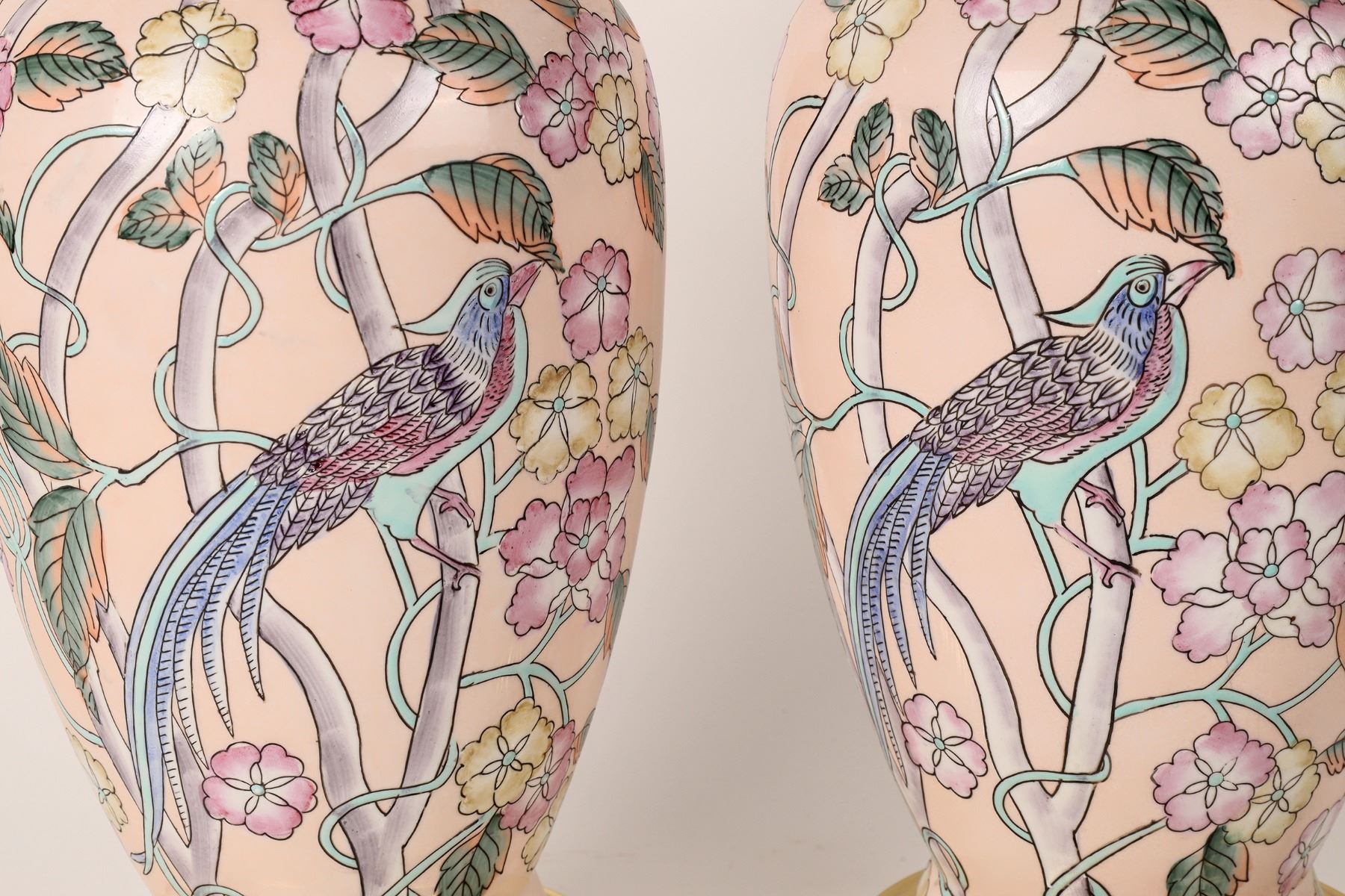 Matched pair of porcelain Chinese lamps without shades. 19" tall. No apparent chips or cracks. China