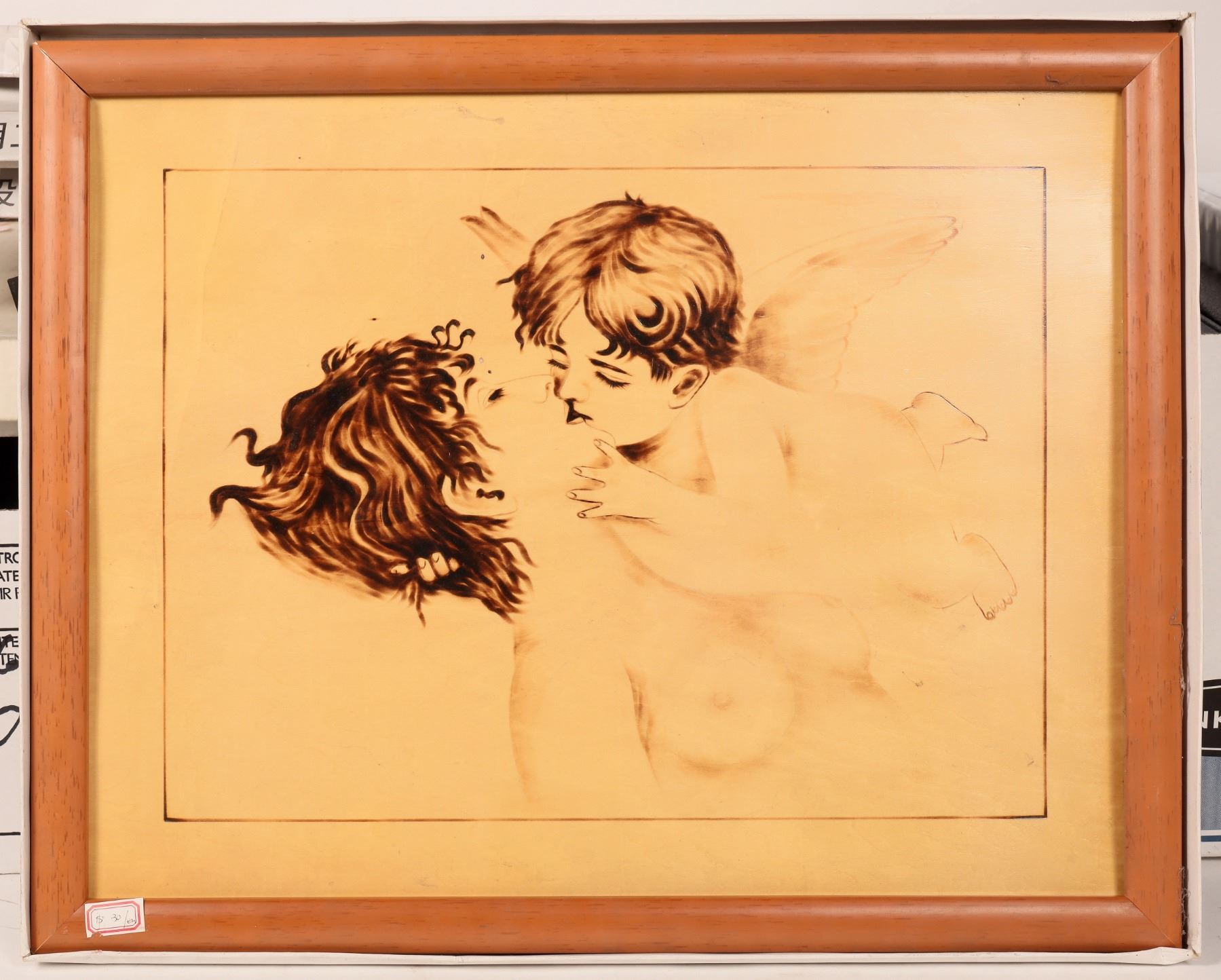 Lot includes 17x framed art. Includes: 3x 29x11", 1x 26x15", and 1x 20x16" etched bamboo with nature scenes and birds; 7x 20x16" burned etchings of woman and natural scenes, very detailed; 1x 28x19" carved writing on bamboo slats, tied together, titled "36 Strategies". 1x 38x20" Chinese writing on silk; 1x 17x17 simulated stone art, very beautiful. Chunlin Collection.