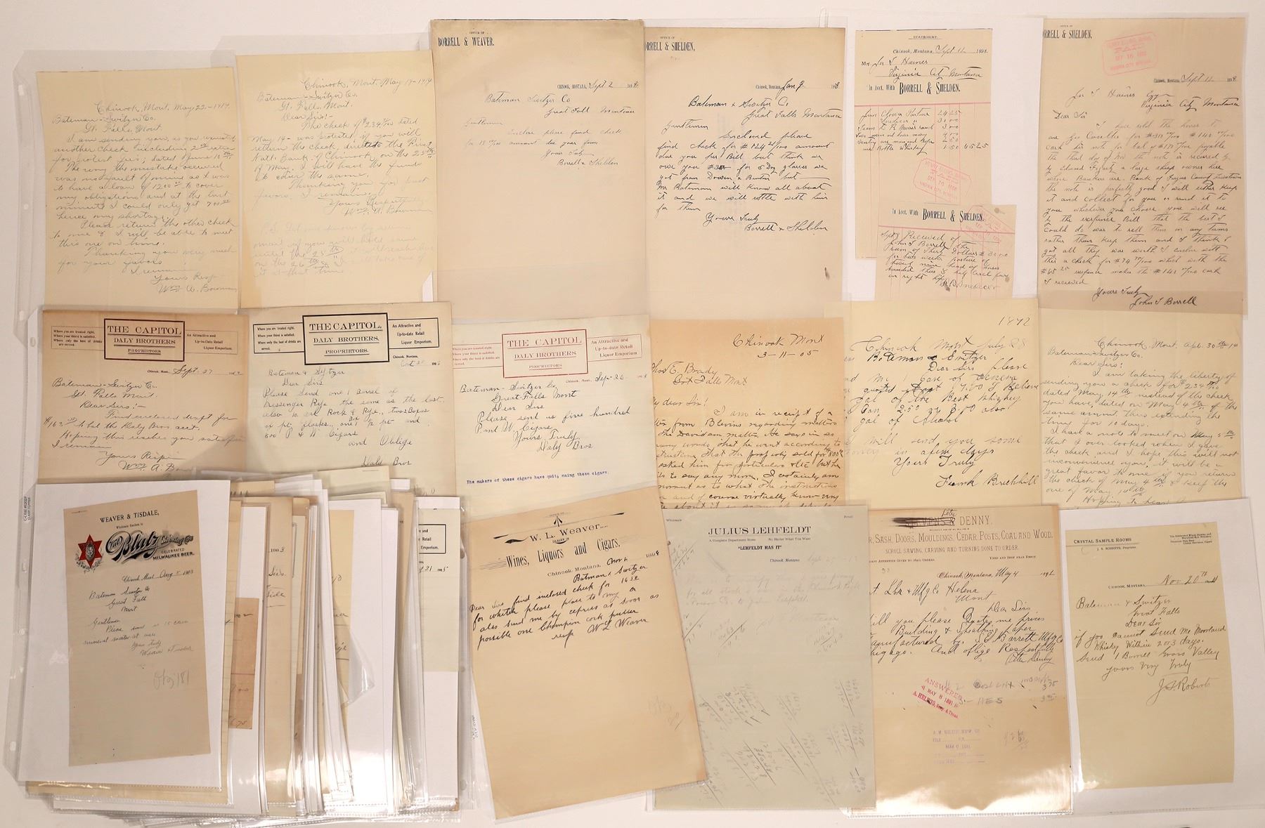 A mix of approximately 80 printed letterheads and manuscript letters, c1800s- 1900s. Mostly general merchandise and a few other businesses, but other goods too. Includes photos as well. Chinook, the county seat of Blaine County is located on Lodge Creek, where it empties into the Milk River.