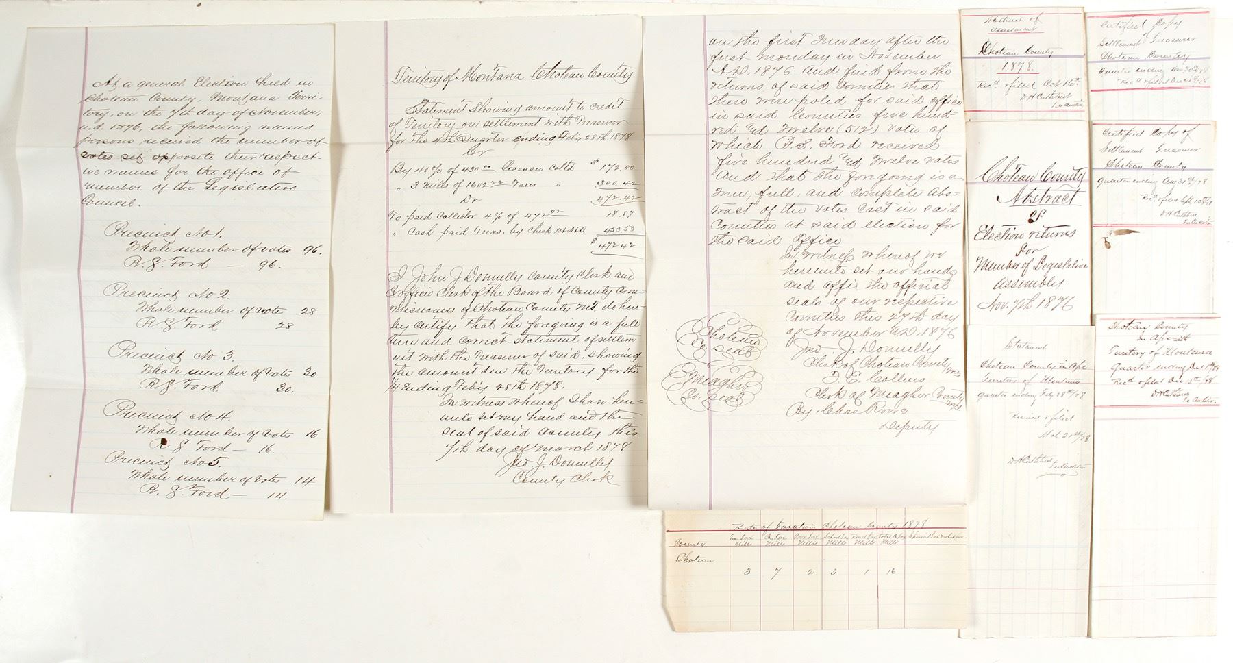 9 Choteau County, MT financial reports, rate of taxation table, abstracts etc. Date: 1876-1878 Location: Choteau County, Montana HWAC# 69012