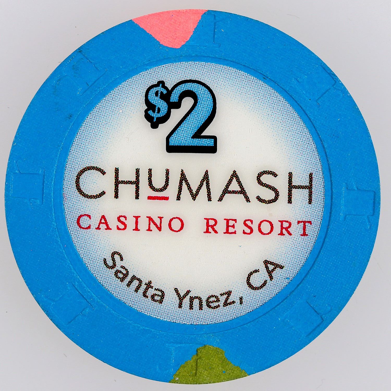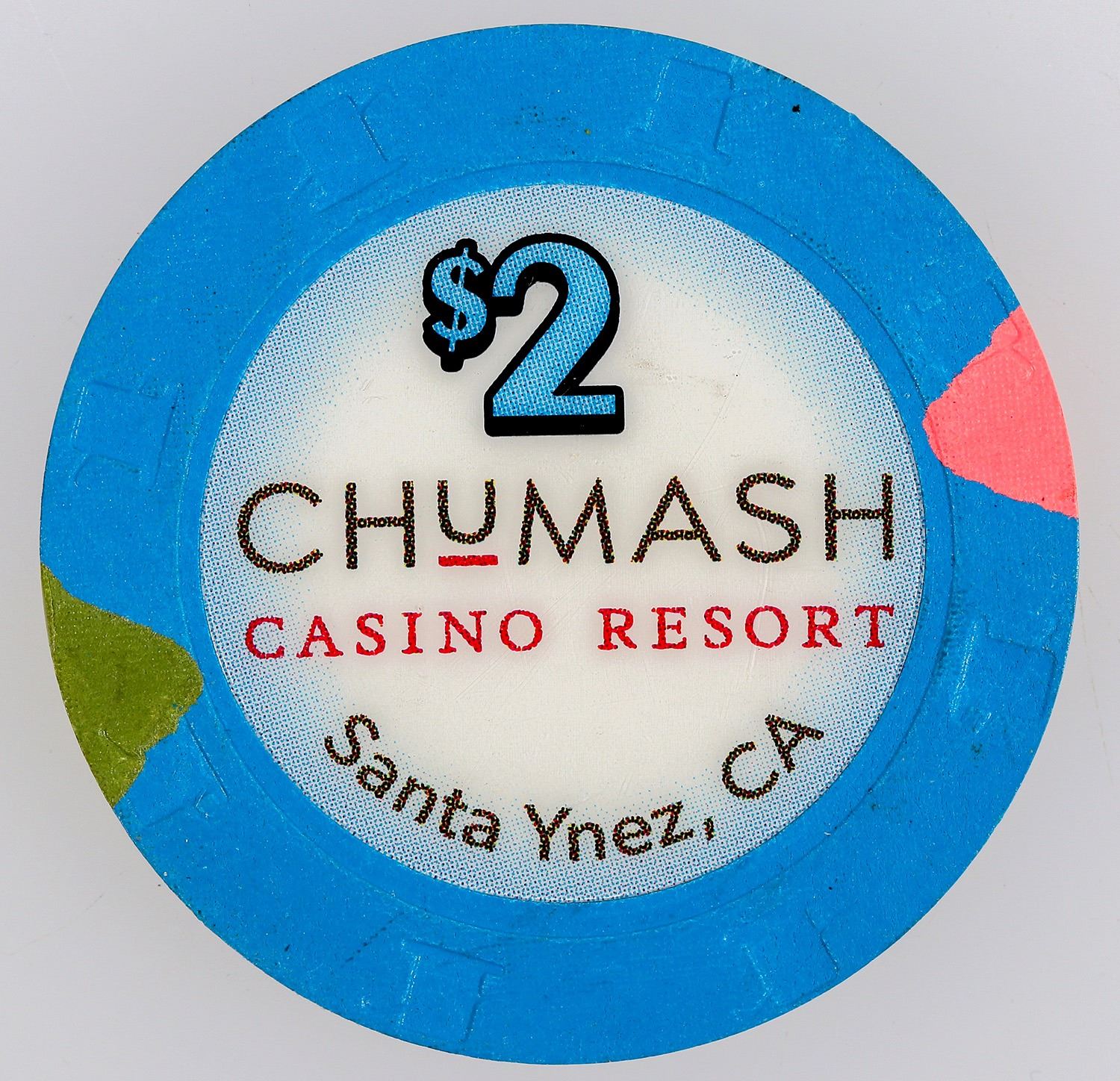 The $2 denomination chip is made for the "rake" or "the drop" and not for general circulation. Since they're not for players, they seldom are circulated.