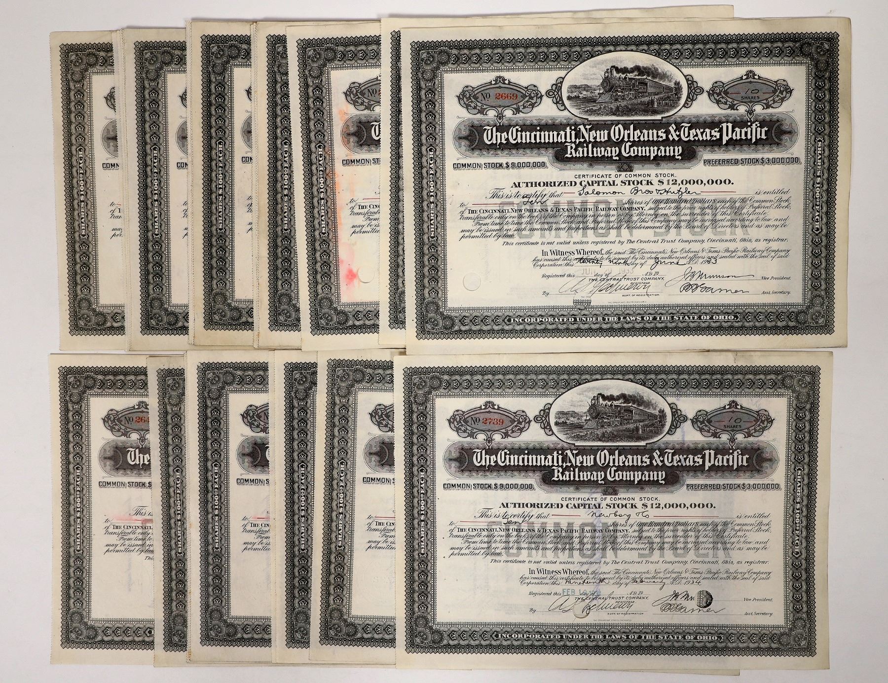 30x 1931-34 Cincinnati, New Orleans & Texas Pacific RW stocks. 1 has a hole.
