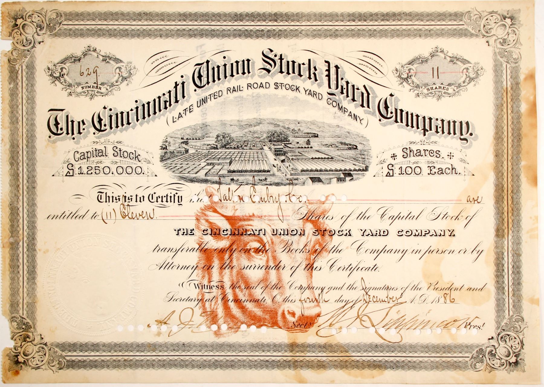 Issued punch cancelled. #629 11 shares 1886.Catlle head underprint. Left chips, toning, please inspect. Prag Collection.