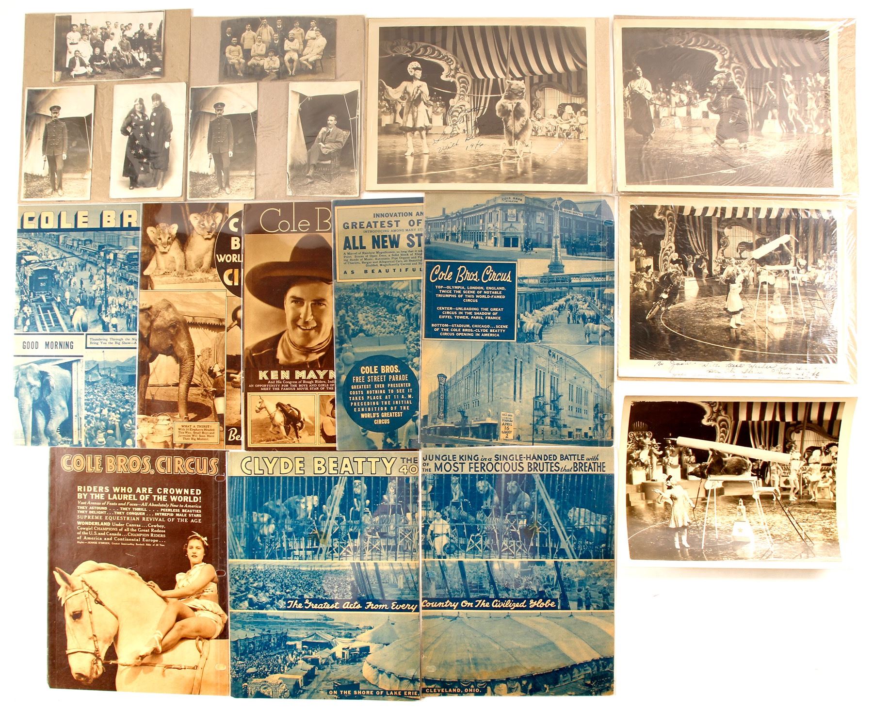 8 Cole Bros Circus B/W flyers with nice cover photos, 4 Bear 8x10" b/w photos, 6 small circus personnel photos. State: City: Date:
