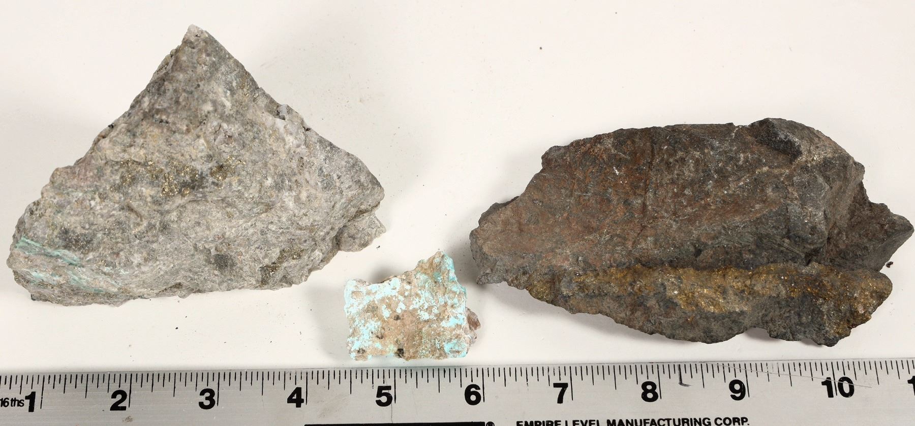 This group consists of average ore, a piece of high grade turquoise, and copper slag all from the operation at Miami, AZ. It was mined in the 1950s-today. The mine has undergone a number of ownership changes since the 1970s.