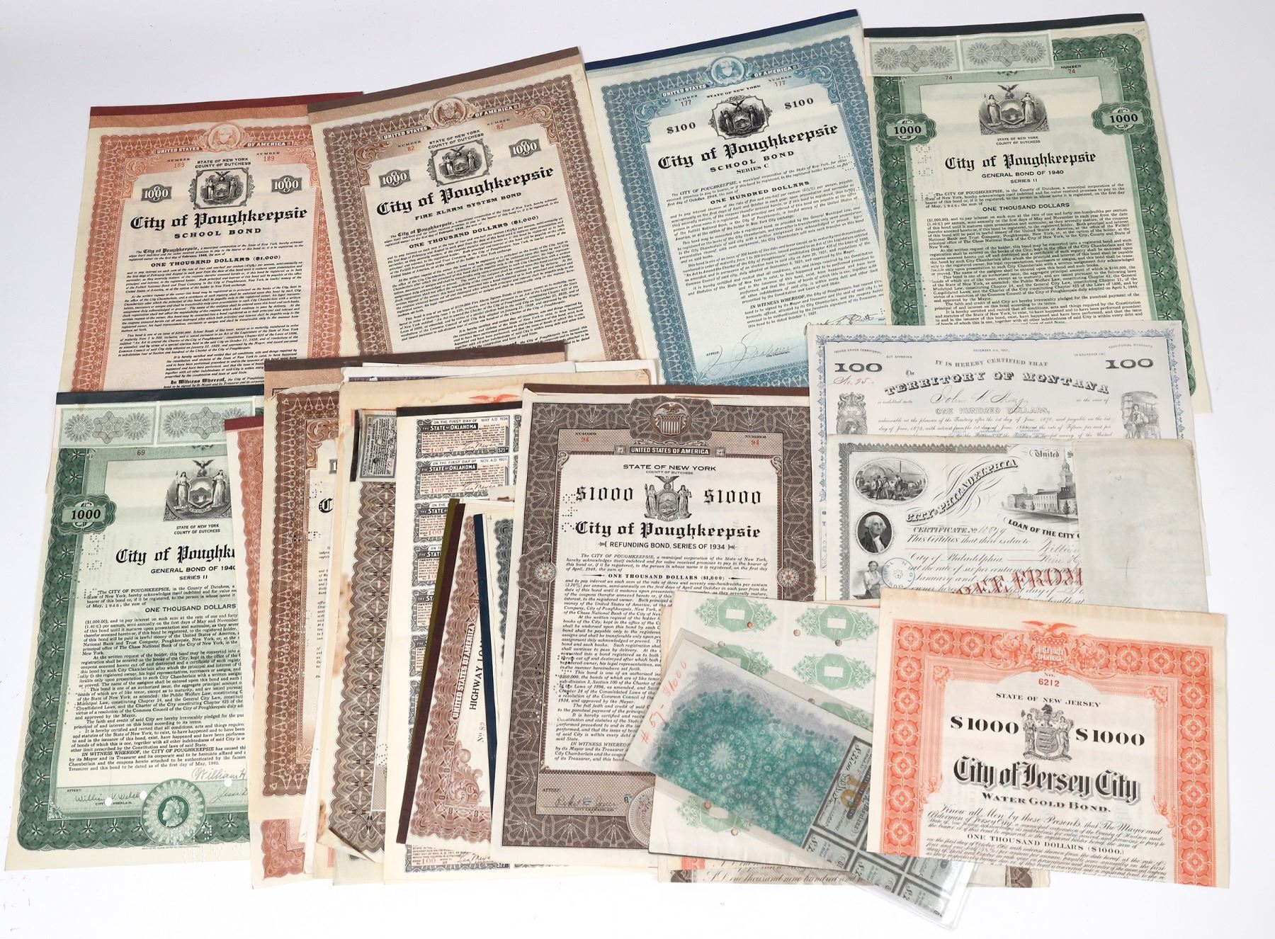 About 25 city, county, utility and state bonds. Montana Territory, Philadelphia, Louisiana, Arkansas, Colorado Springs, Oklahoma, Rhode Island, Providence, Jersey City and more.