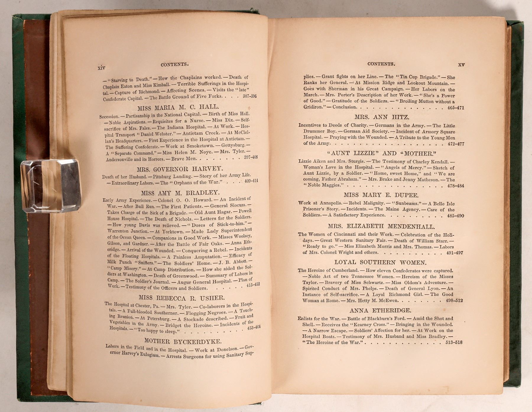 Women of the War;Heroism and Self-Sacrifice by Moore-596pp, both boards detaching, some foxing. 1863 Report of the Joint Committee of the Conduct of the War in Three Parts, 512pp with index, some foxing. 1862 The Ordnance Manual for the Use of the United States Army, 559pp plus index and plates, possible inner board/spine junction tape repairs, spine damaged and detaching, front lower board detaching. Please inspect.