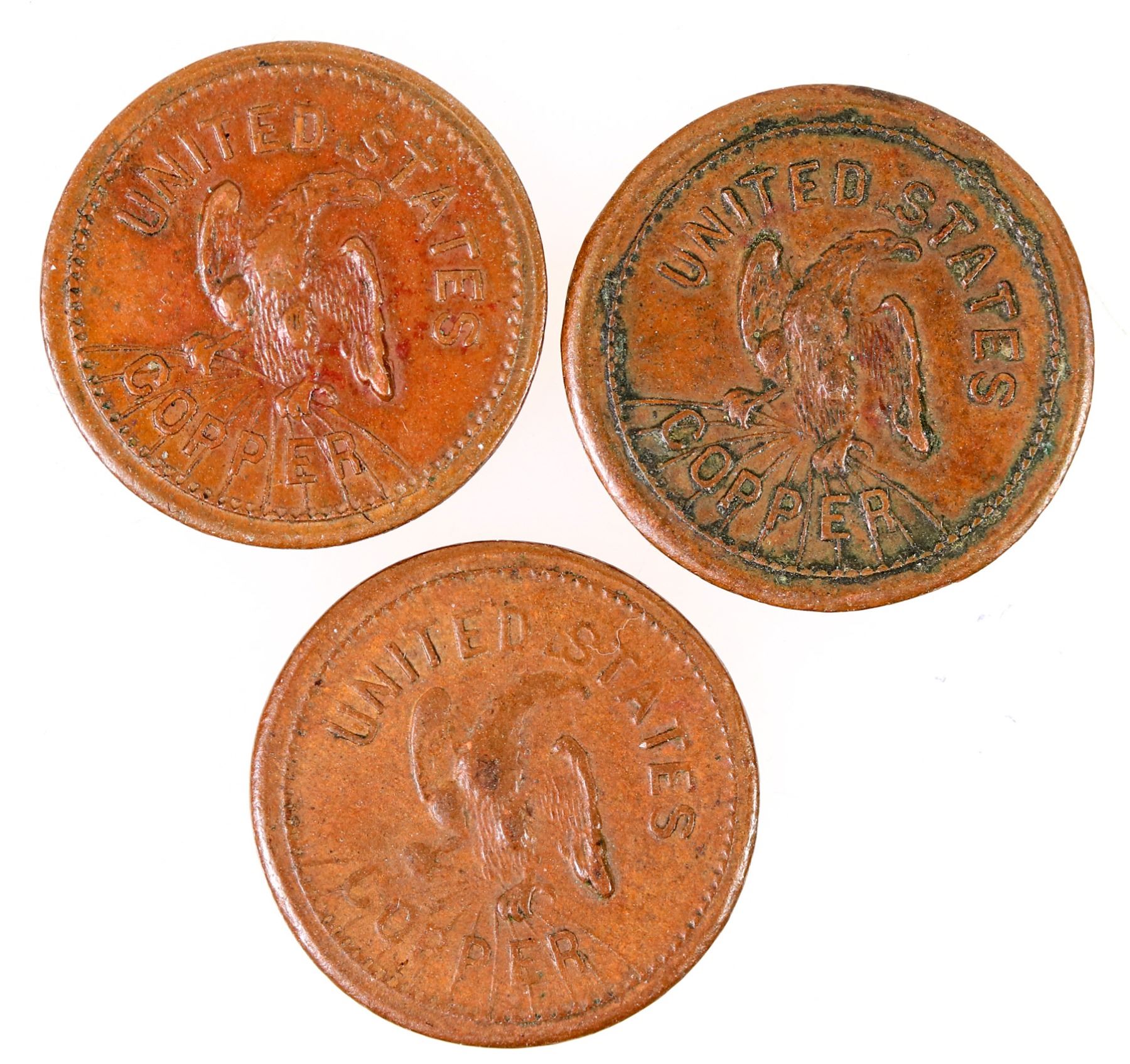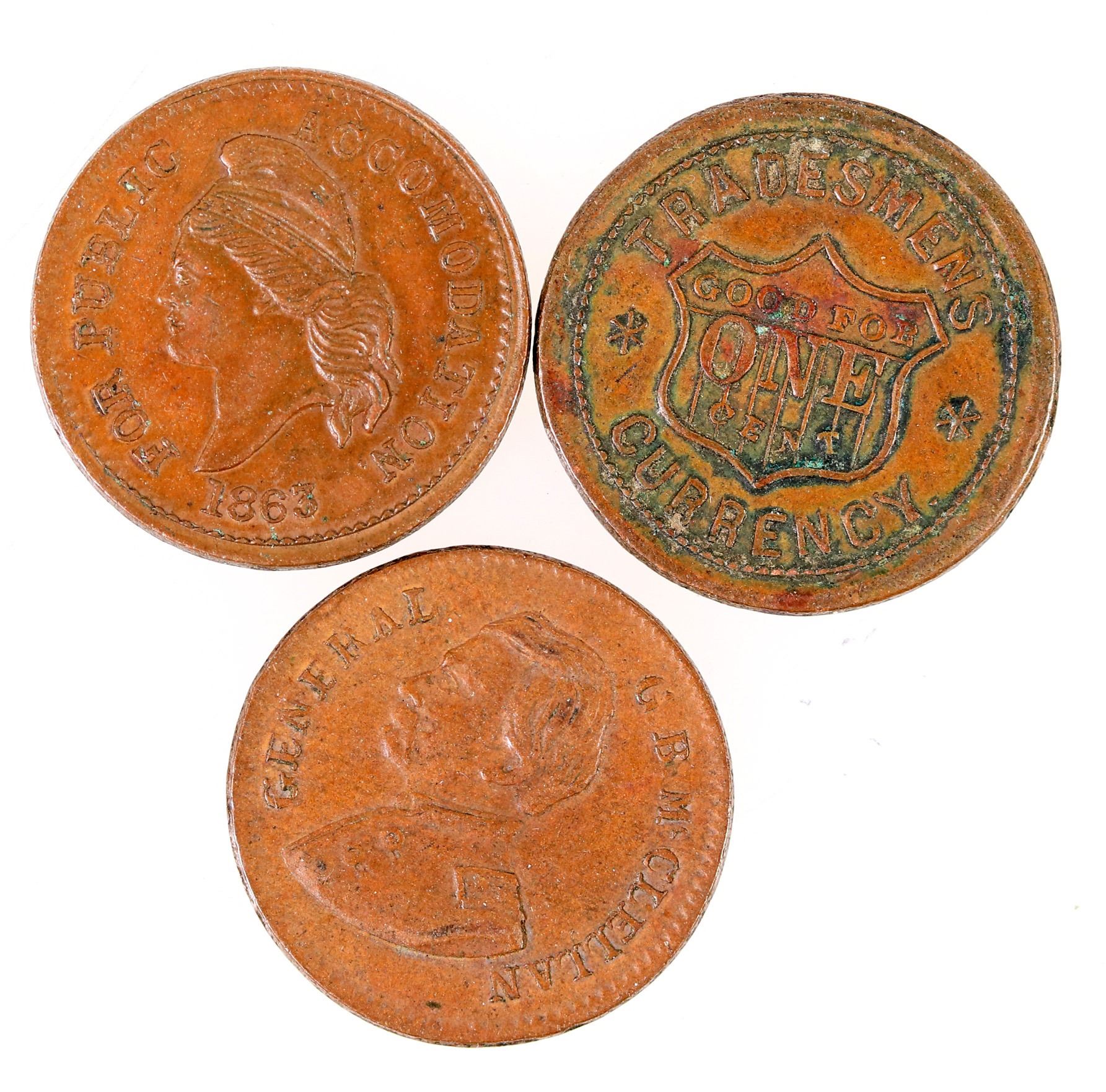 Three Civil War cents: For Public Accommodation; Tradesmen's Currency; Gen. McClellan.