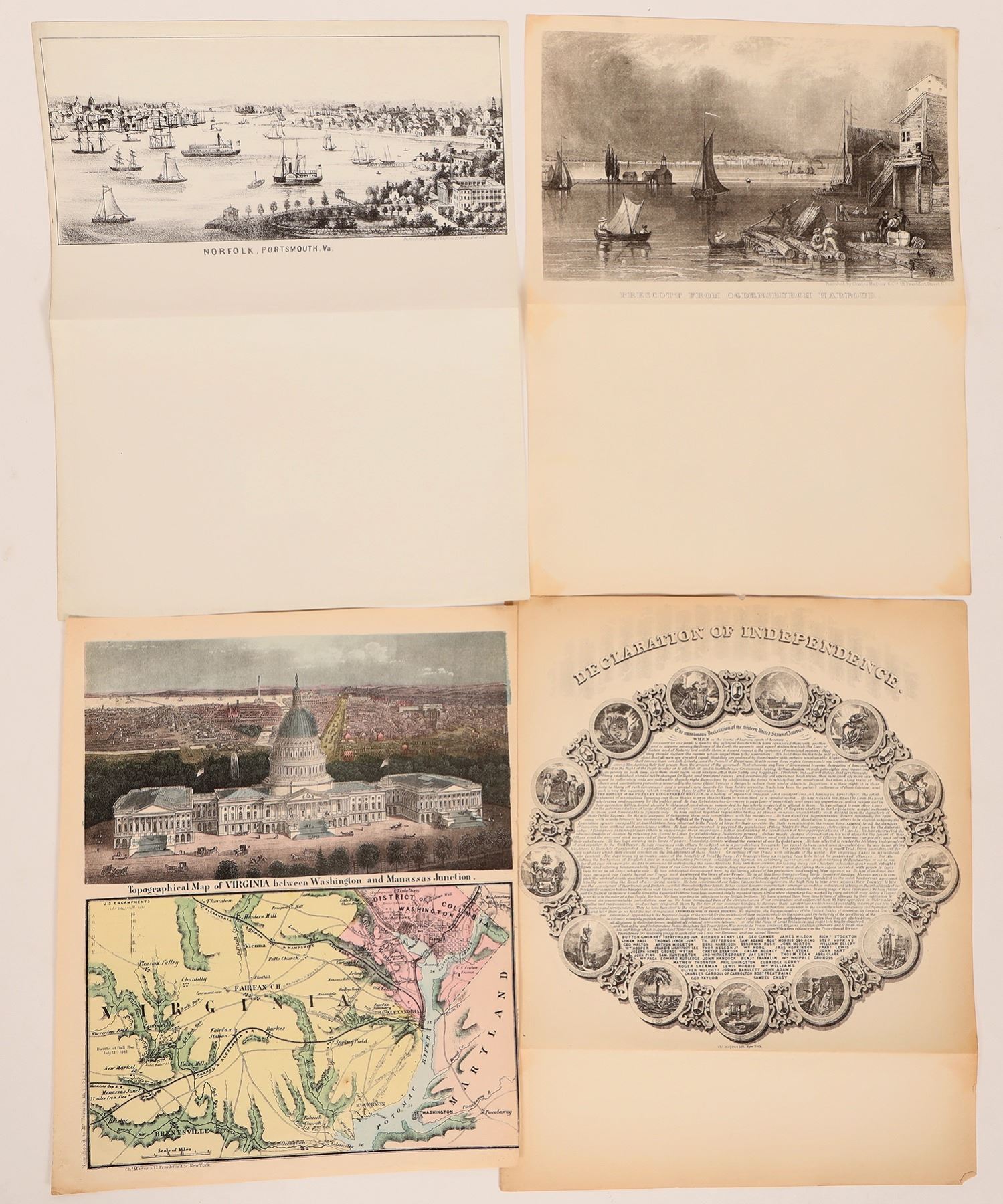 4x about 9.5x7.5" unused Magnus Civil War lettersheets. US Capitol/Virginia, Prescott from Ogdensburgh Harbour, Norfolk Portsmouth Va., Declaration of Independence with toning.