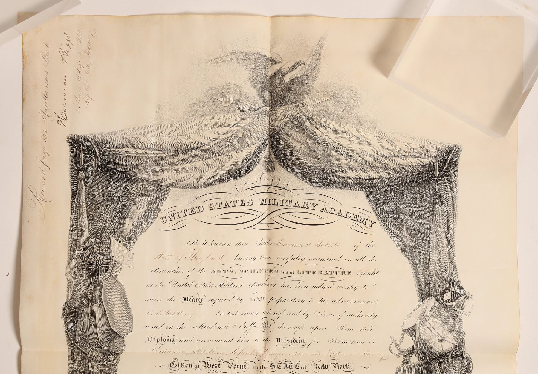Graduation diploma from the the United States Military Academy at West Point. The diploma is made out to Cadet Lawrence S. Babbitt. and dated July 1, 1861.