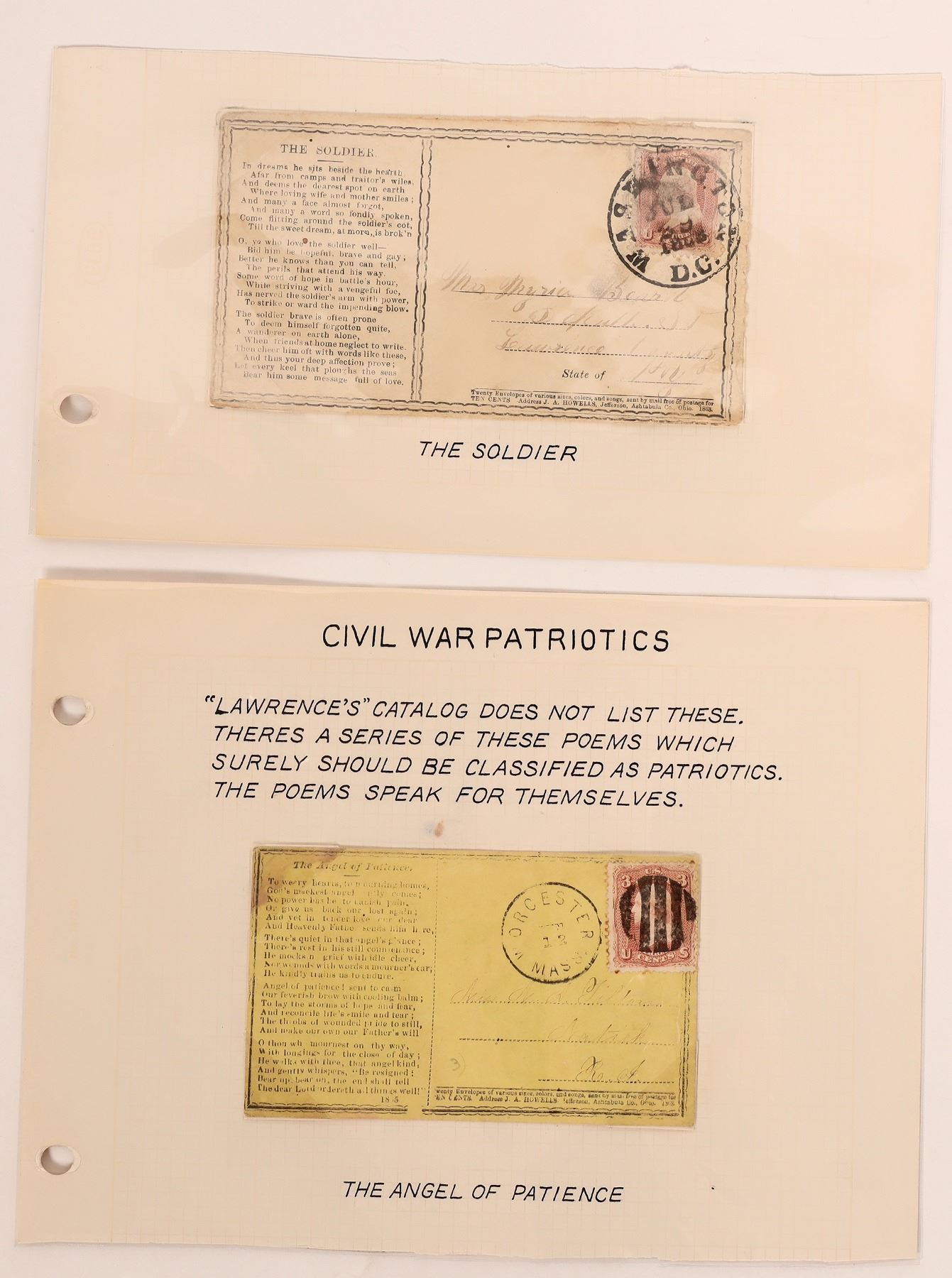 2 unlisted covers in Lawrence. The Angel of Patience, 2.5x4.25", Worcester, Mass cancel. The Soldier, 2.75x5", Washington DC cancel.