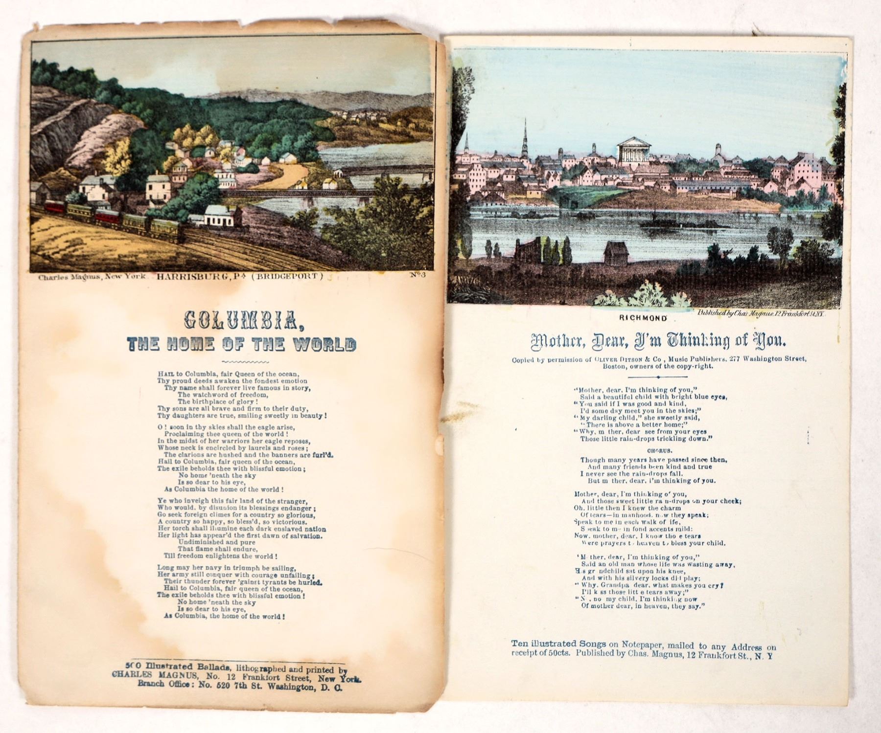 2 Civil War Pictorial letter sheets by Charles magnus, 8x5". Columbia The Home of the world with stains and rough edges and Mother, Dear, I'm Thinking of You. Please inspect.
