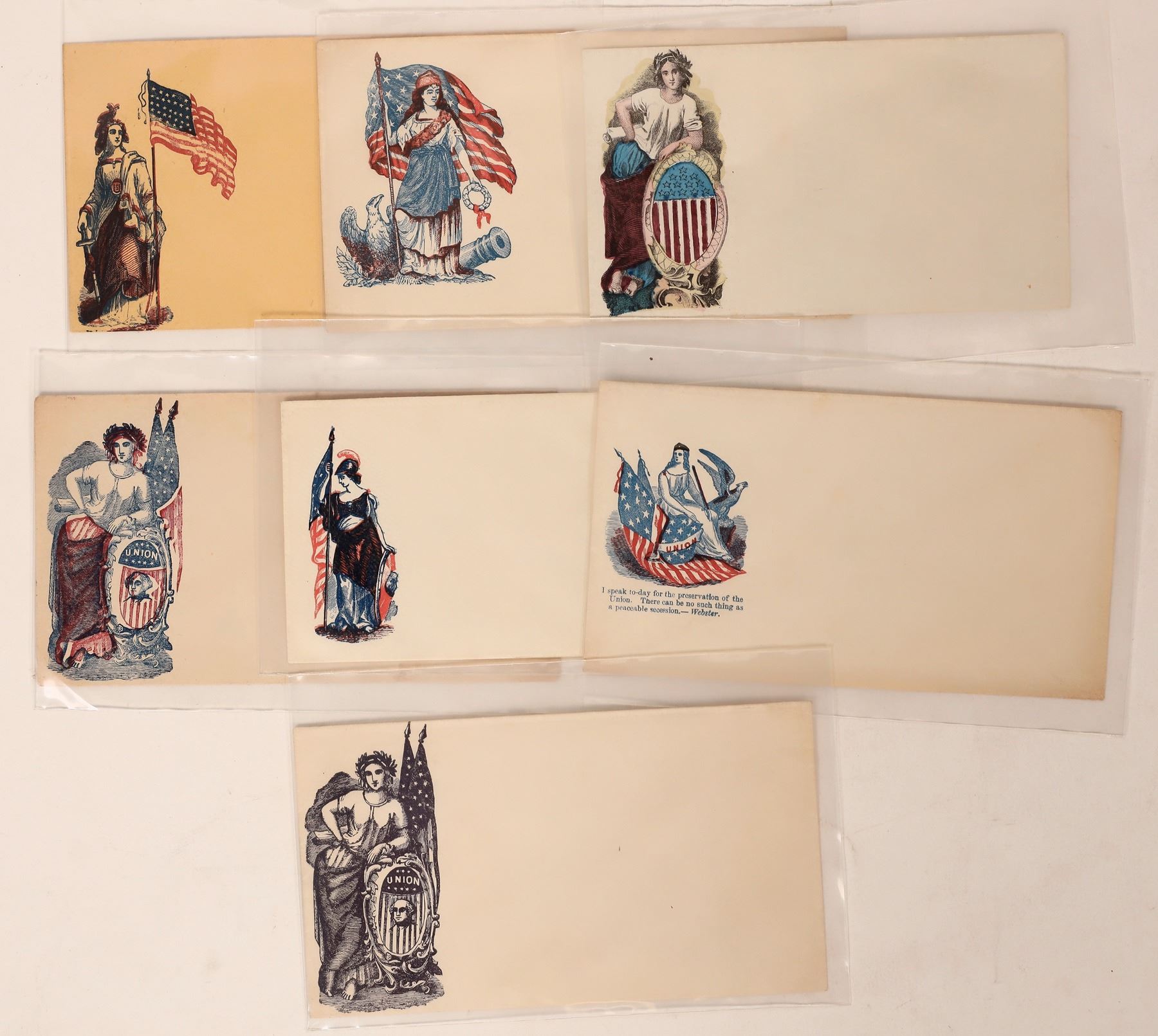 7 different Civil War political covers with Lady Liberty. About 3.25x5.5".