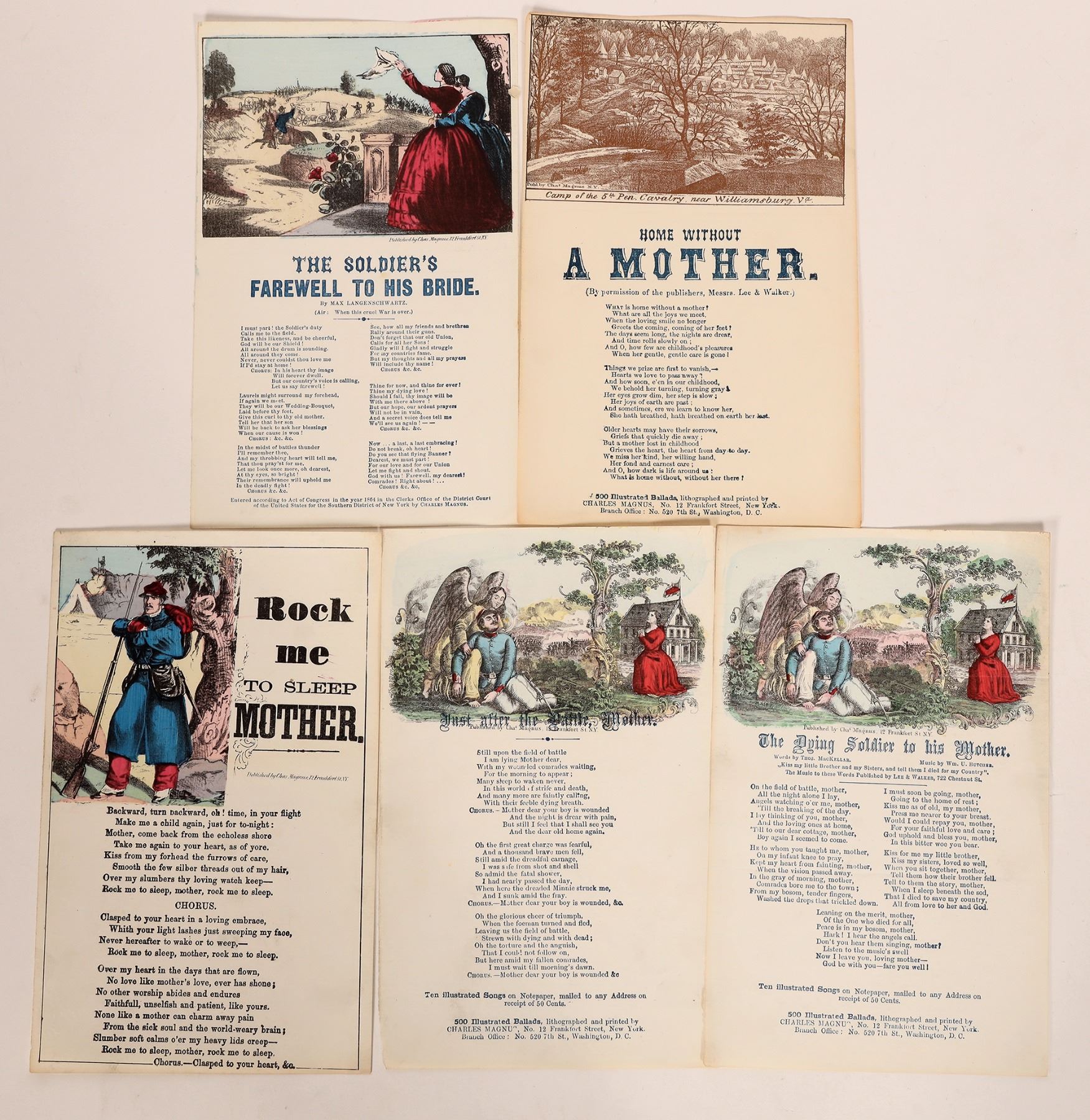 Home Without a Mother, Rock me to Sleep Mother, Just after the Battle Mother, The Dying Soldier to his Mother, The Soldier's Farewell to his Bride. 8x5".