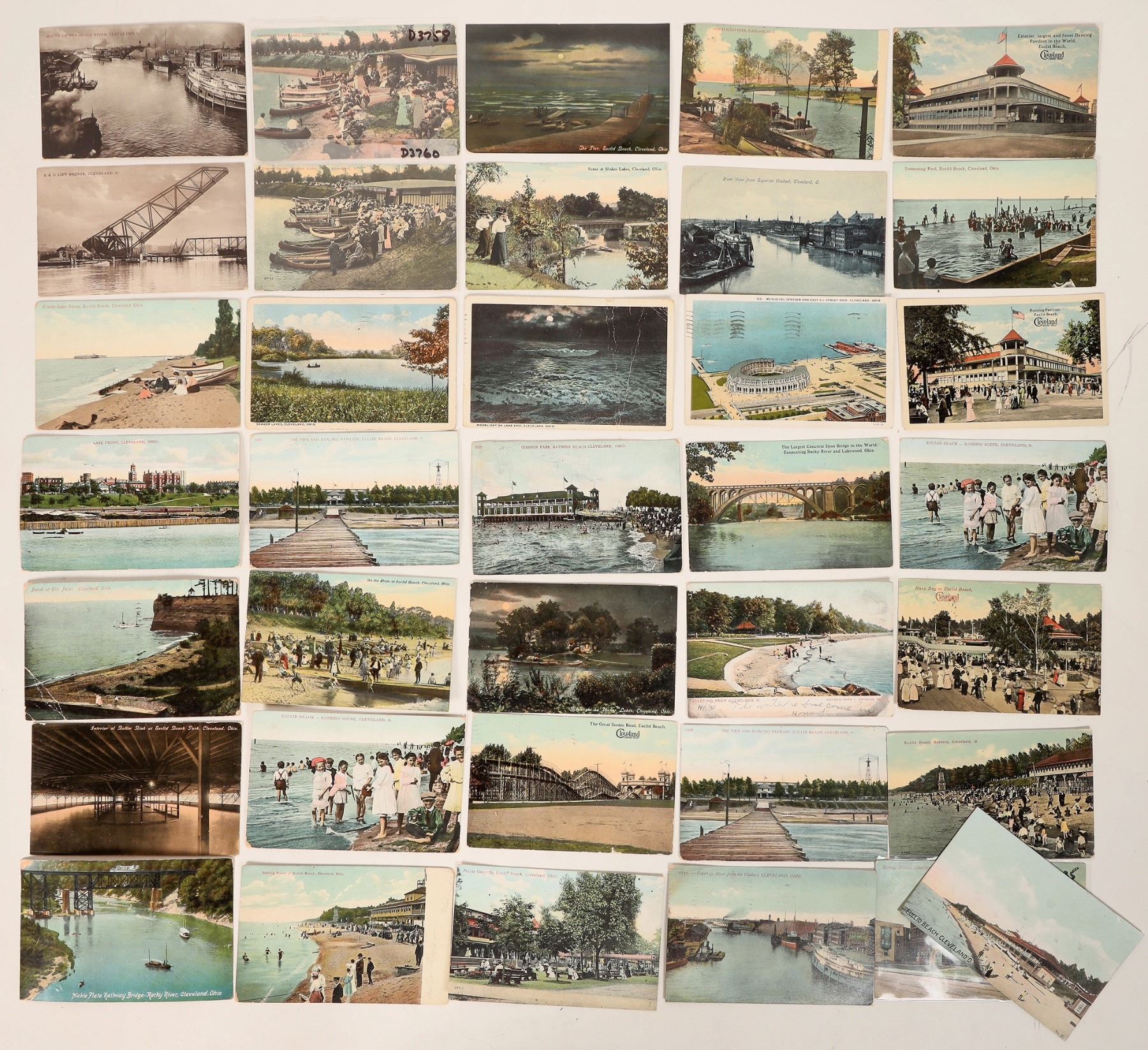 36 Cleveland water scenes. RPC's-B & O Lift Bridge, mouth of Cuyahoga River. Also, Shaker Lakes, Euclid Beach, Gordon Park, Rocky River, Cuyahoga River etc.[ Cleveland Ohio