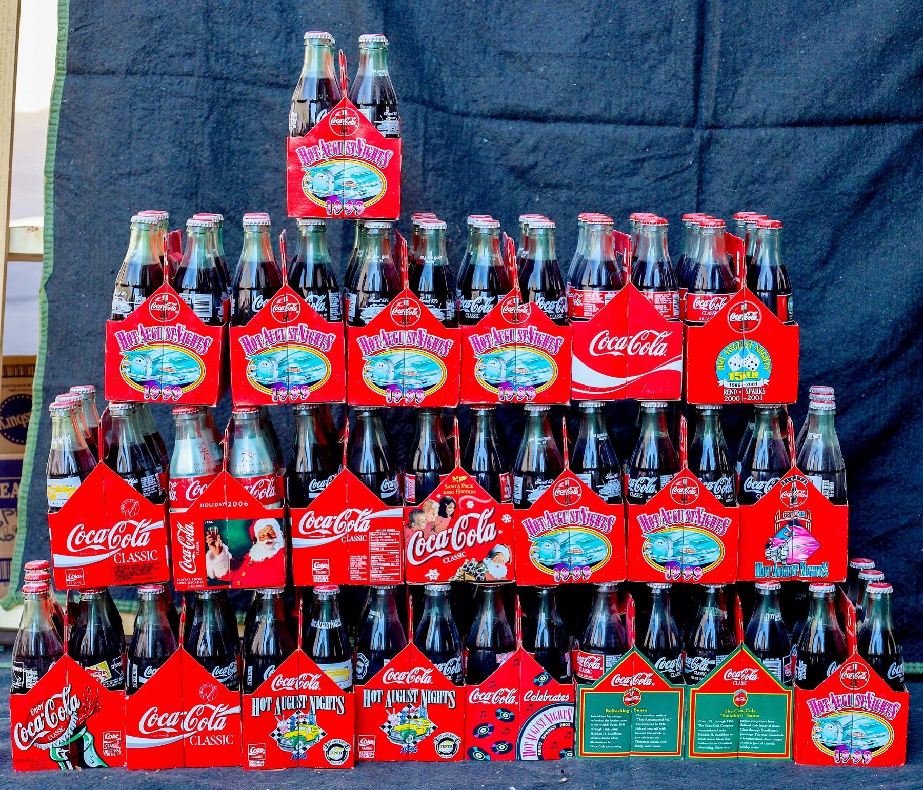 Lot includes 22 six packs of bottles with contents. Includes: Hot August Nights 1993, 1994, 1996, 1999, 2000; Christmas 1995, 2000, and more. Please inspect.