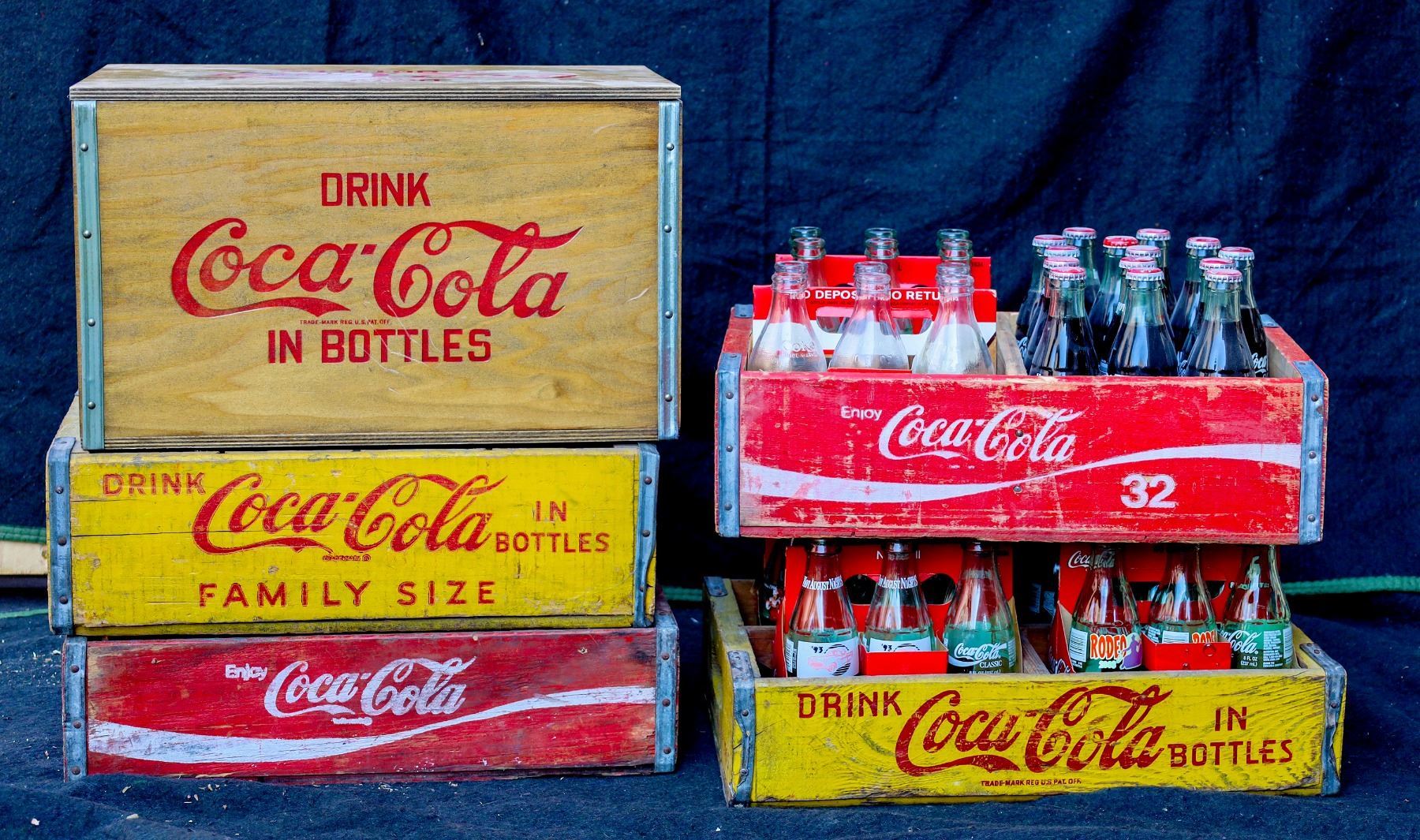 3 different wood Coca Cola wood carrier boxes. 50 bottles including Hot August Nights.