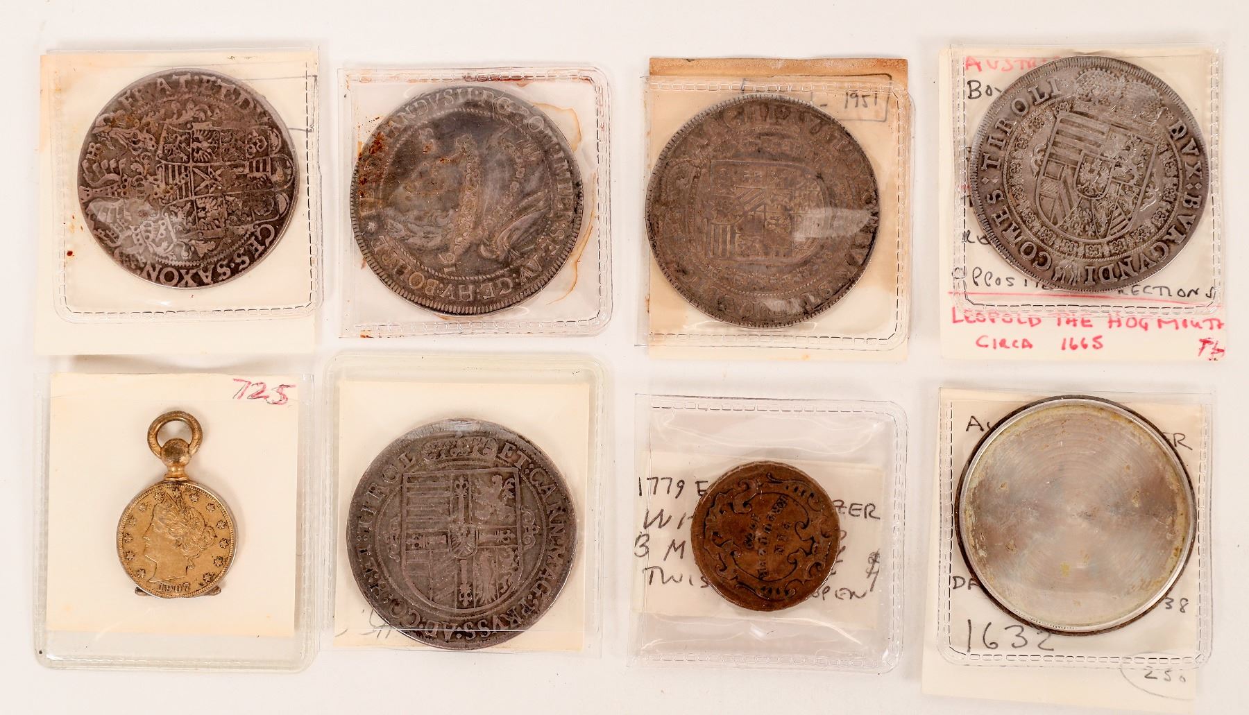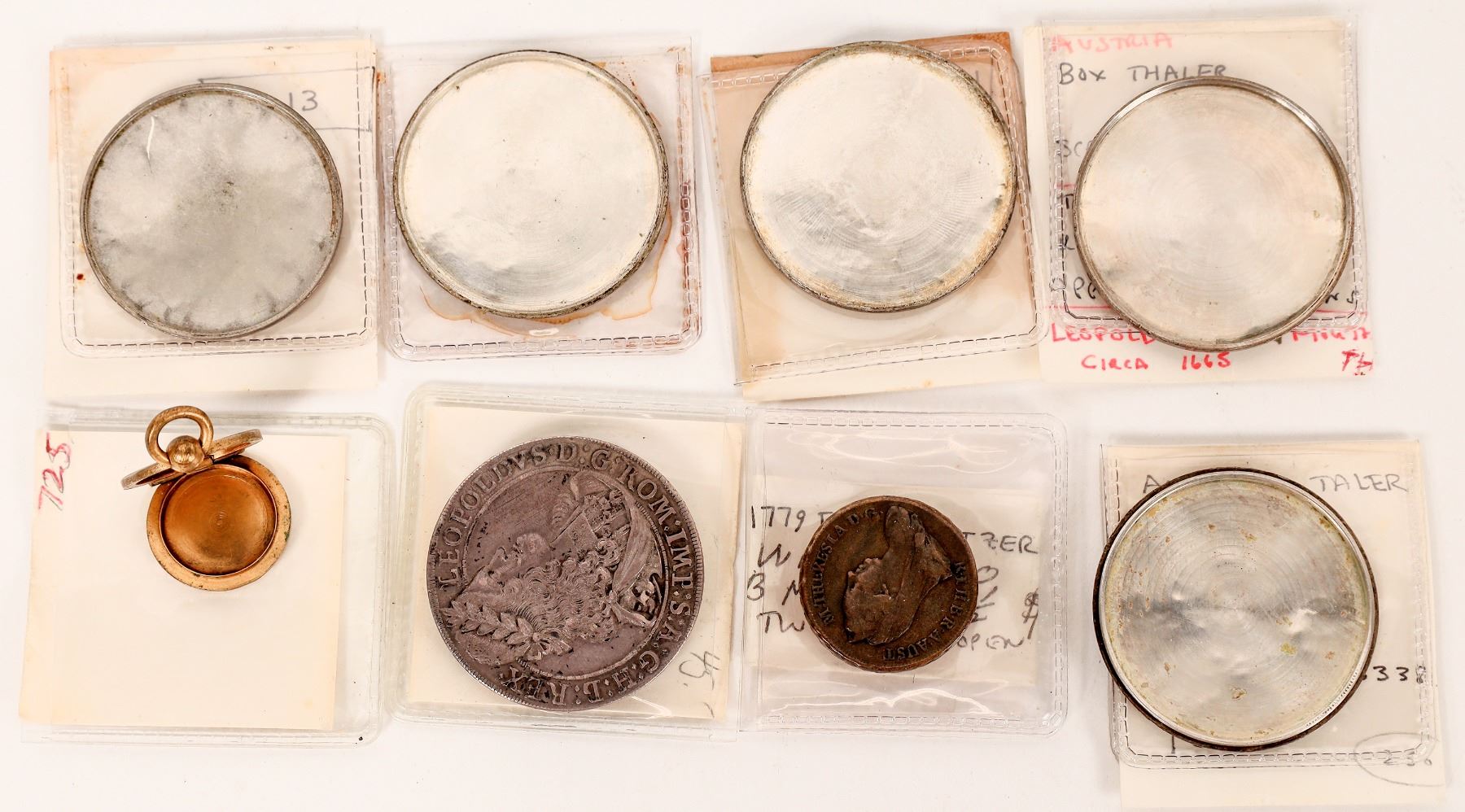 Rare and seldom seen: Lot of five coins that have been made into boxes: 1) 1907 Liberty nickel, gold plated with bezel; 2) 1799 Ein Kreutzer; 3) 1597 taler, Saxony, Germany; 4) Austria box thaler; screw type: twist obverse & reverse in opposite directions; Leopold the Hogmouth circa 1665; 5) 1623 Austria taler; 6) 1632 Austria taler, Leopold.