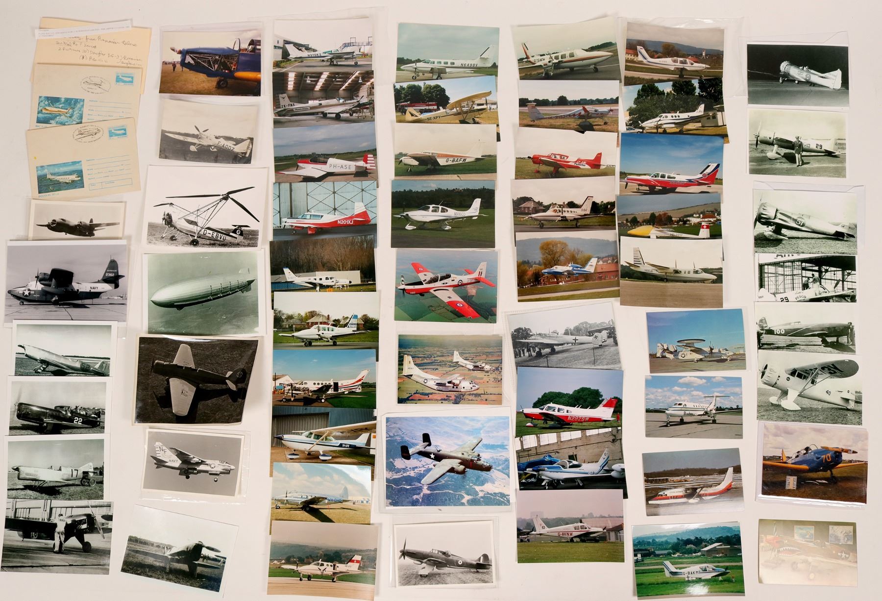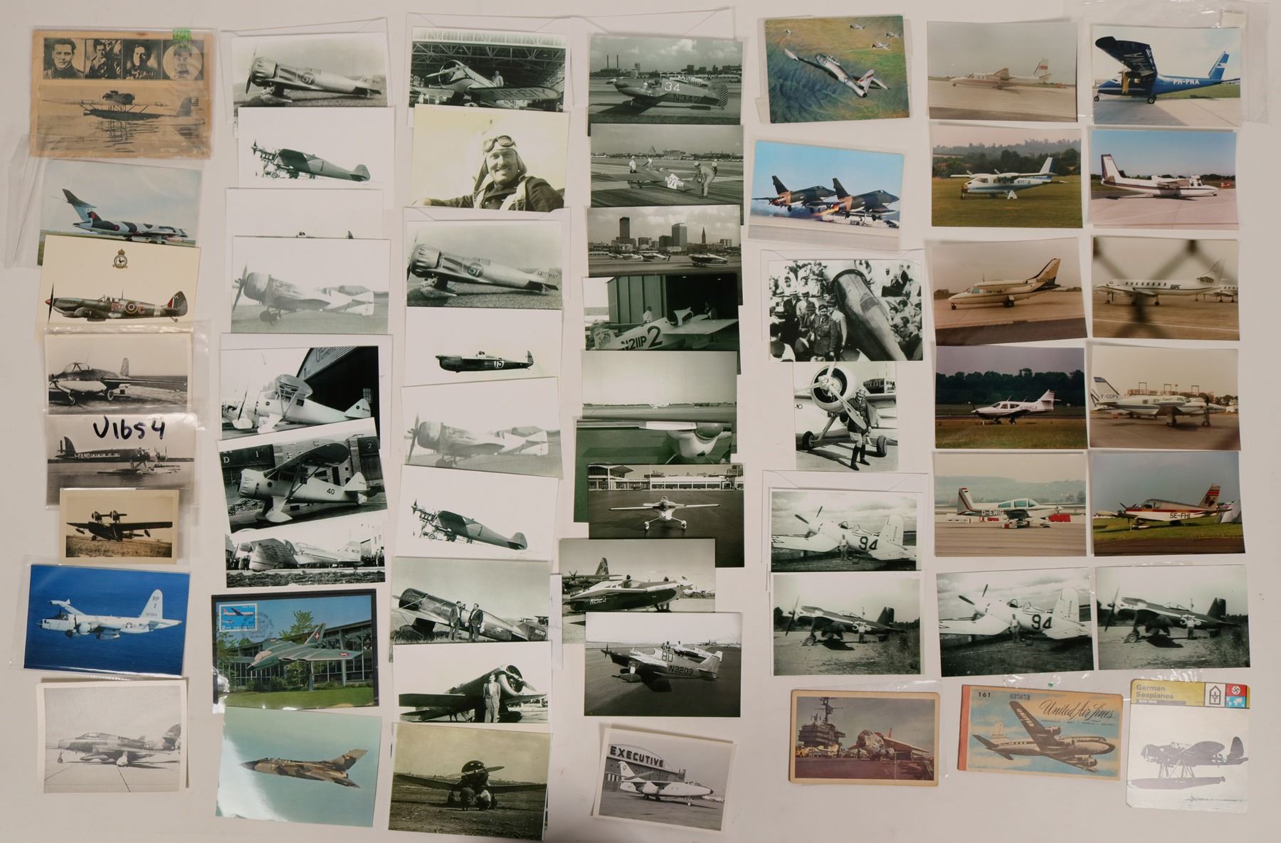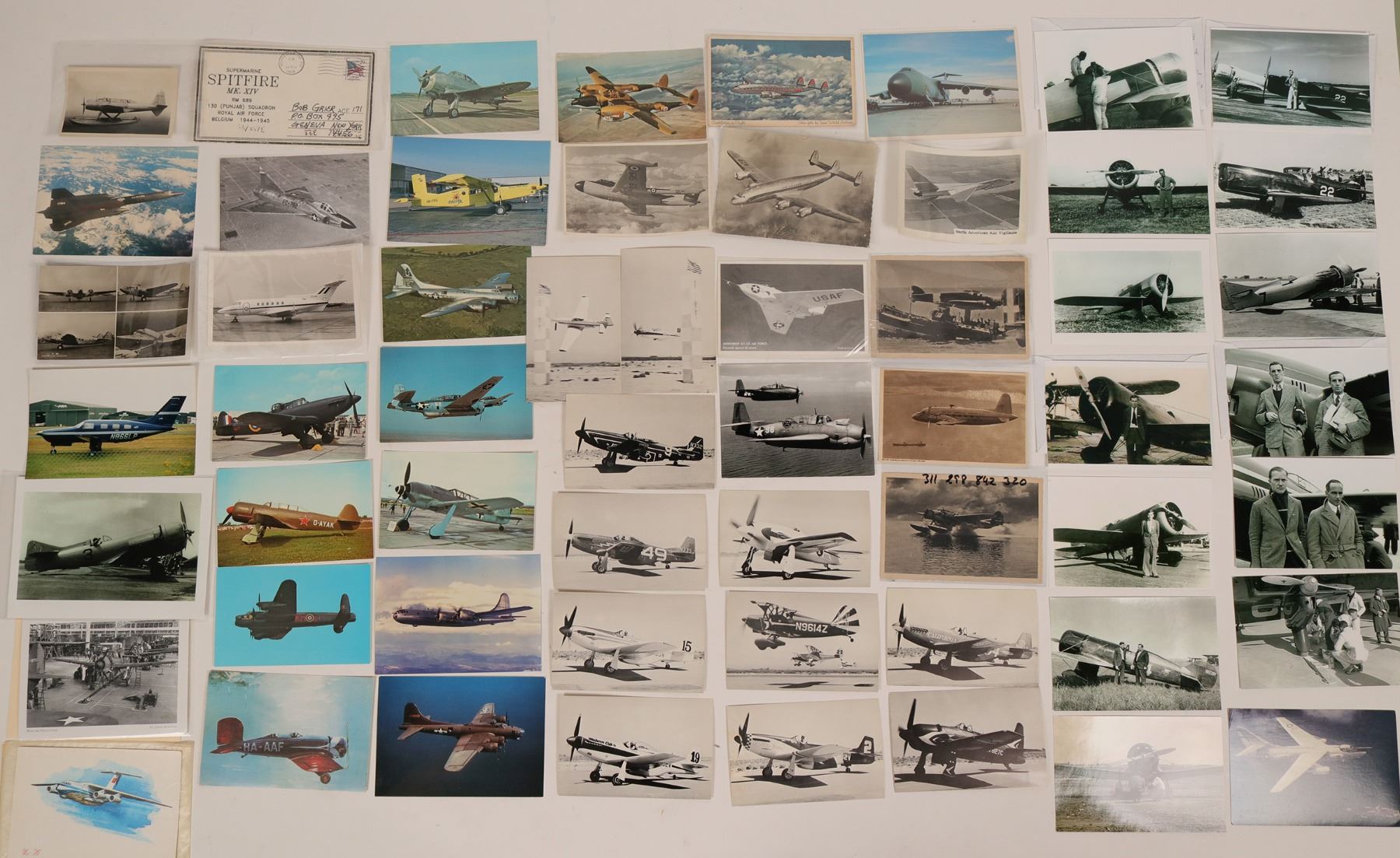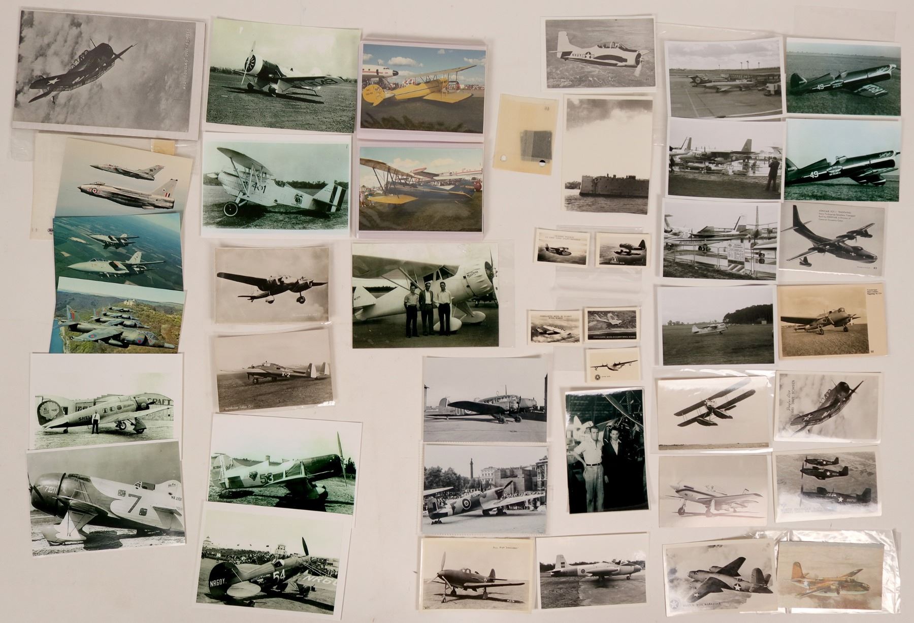 Collection of Aviation Photos: over 200+, Air Races, Pilots, Military Aircraft, postcards and covers; Postcards: Real photo postcards, black/white and colored; about 50-75 of military airplanes; most England, USA, seaplanes, etc. , The SB2C Helldiver' Wartime Production- St. Louis Aviation at Lambert Field, Curtis Wright; Airmail covers; See online catalog for complete description.