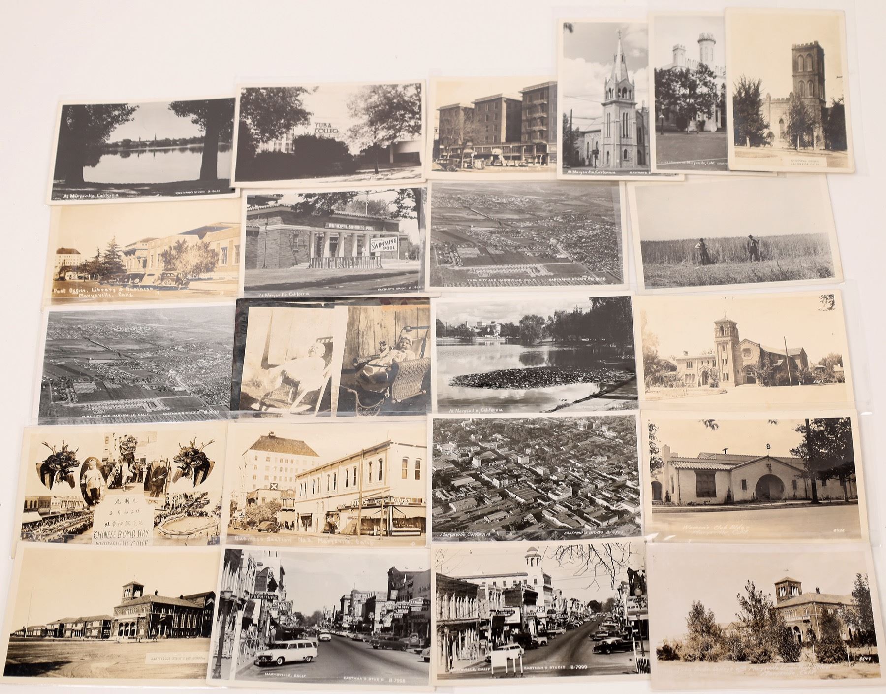 A nice collection rpc's of downtown scenes in Marysville, California. Scenes include the main street and the surrounding area There are twenty (20) showing the the business district, the post office, municipal swimming pool and more. Some are used, some blank. Please see photos for more detail and condition.