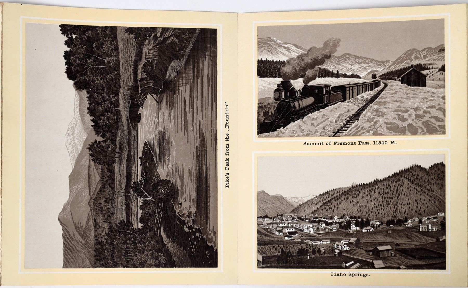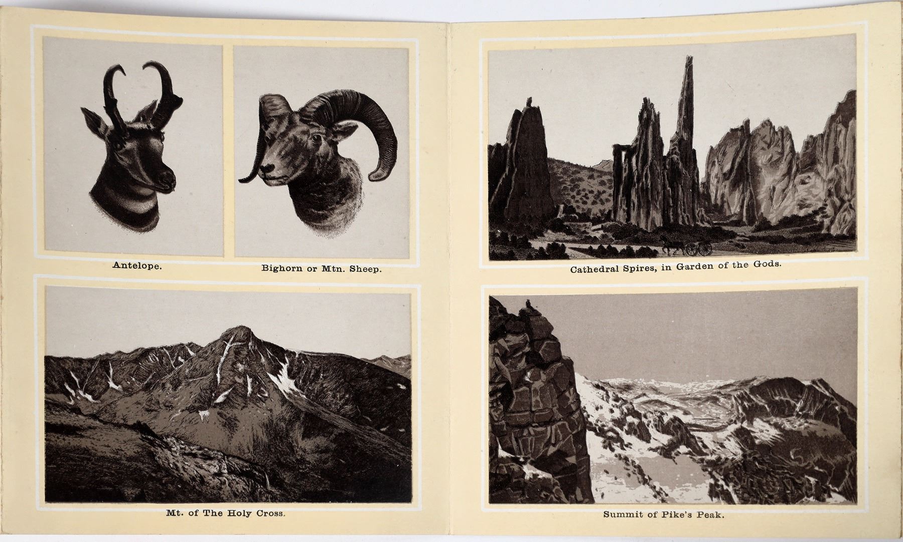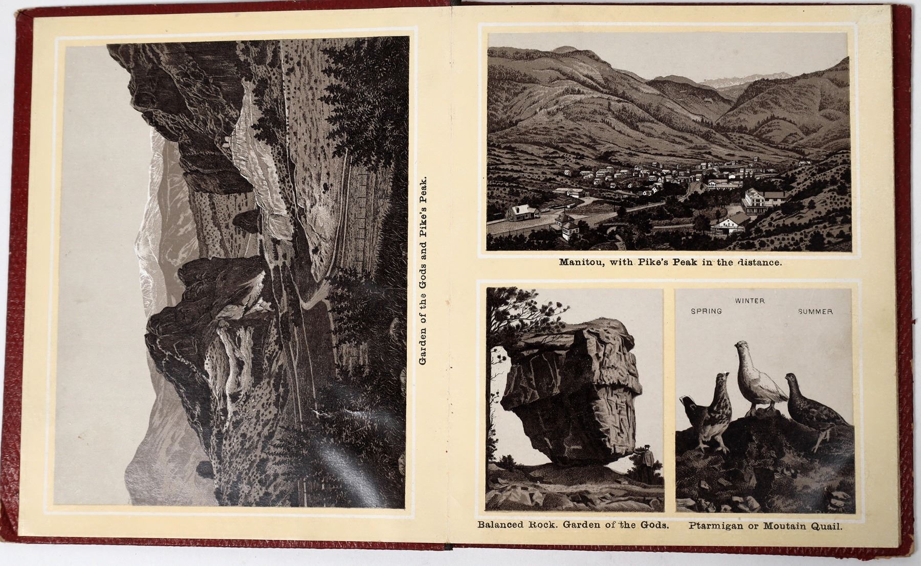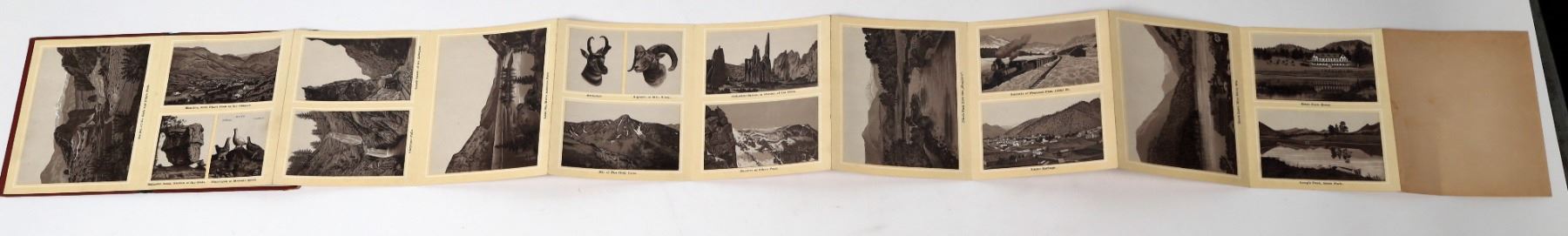 Small Colorado foldout scene book , 21 views on 12 panels. Manitou, Pike's Peak, Cathedral Spires, Idaho Springs etc.