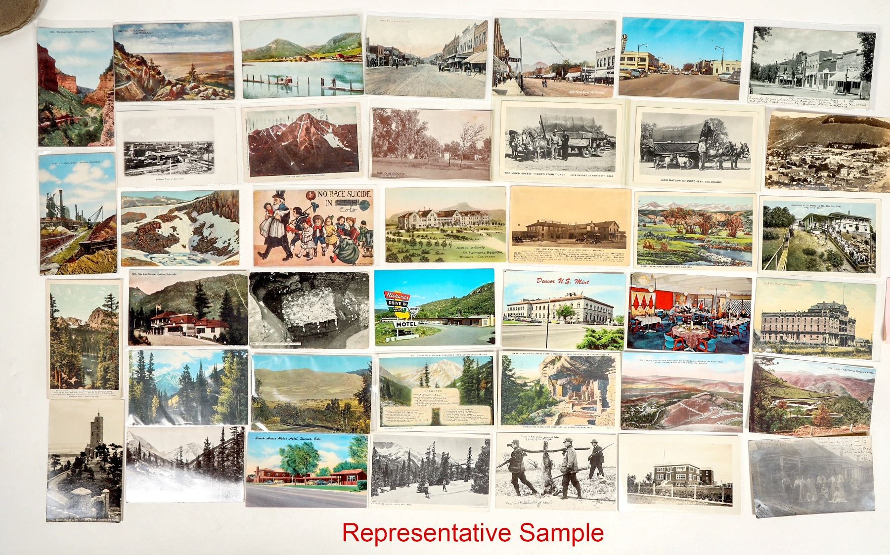 80 plus post cards. In protective sleeves. Excellent cond. Twenty RPC's. From all over the state. Bldgs., canyons, schools, churches, street scenes and more.