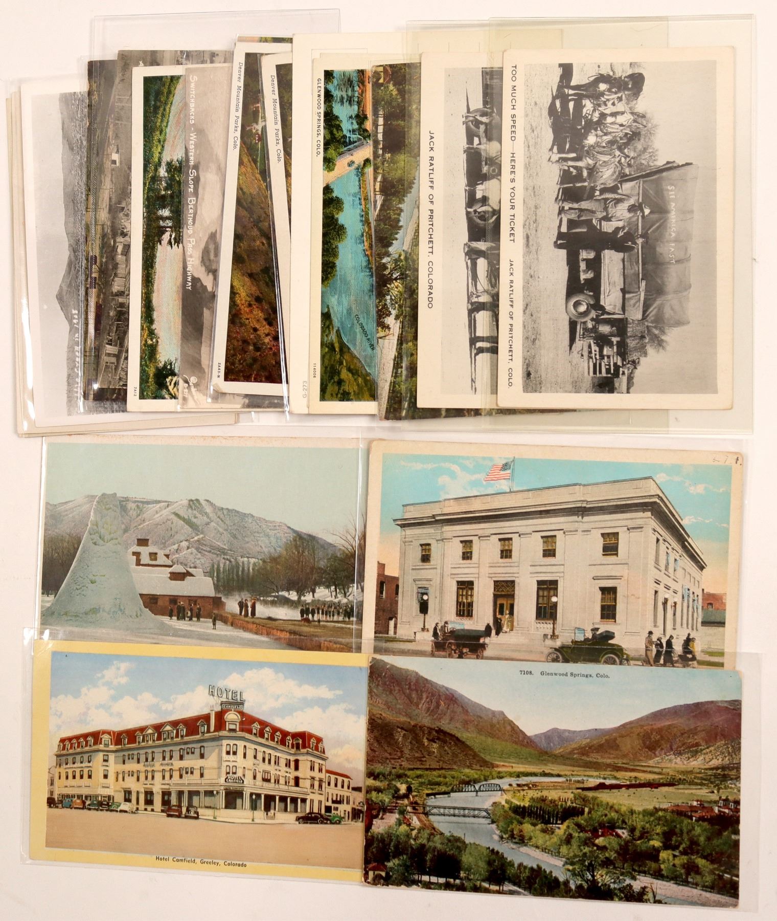Approx 20 Colorado postcards from Akron, Berthoud Pass, Castle Rock, Glenwood Spring, Greeley, Pritchett County, Cripple Creek. Many RPC'sSalvatore Falcone Collection