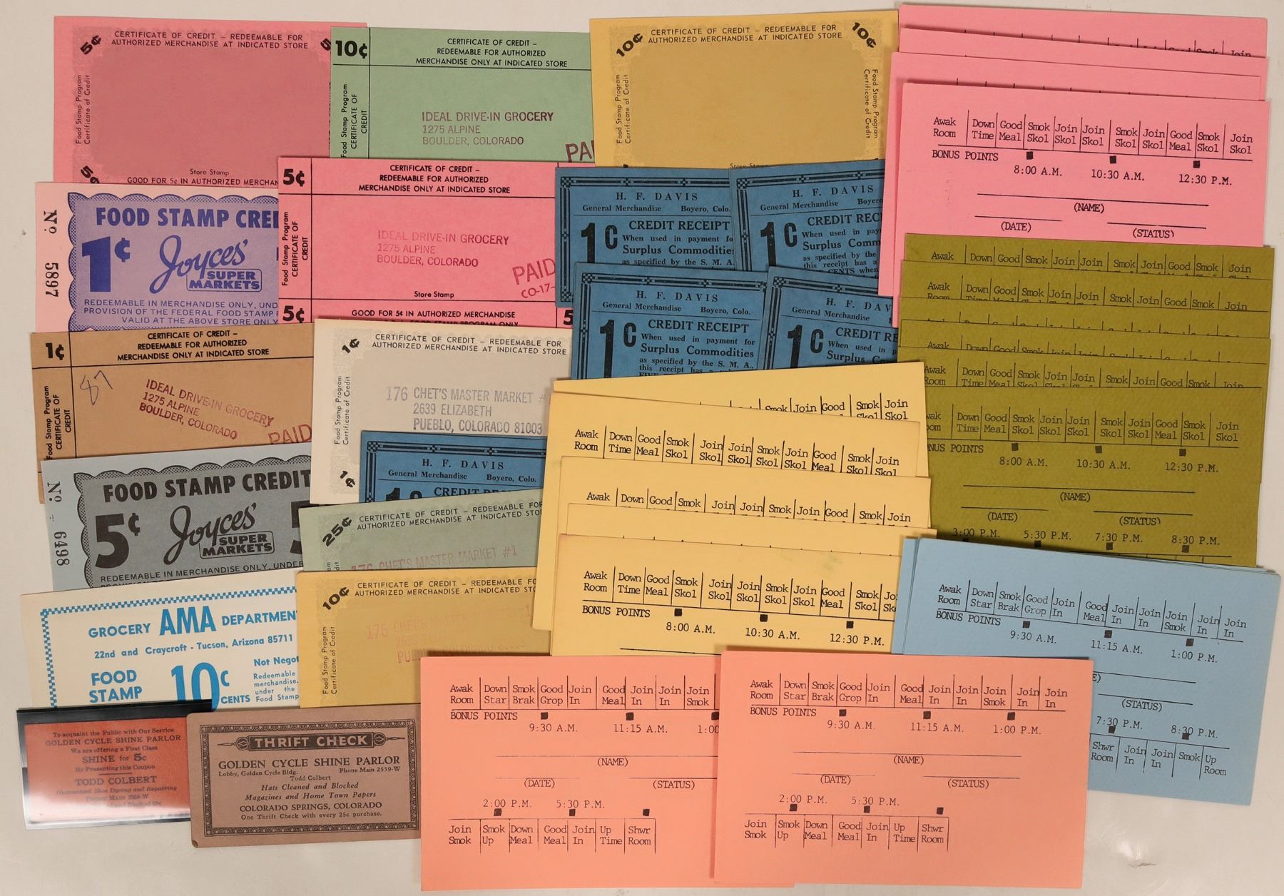 Lot of 38 pieces of scrip. H. F. Davis, Boyero, Colo.; Golden Cycle Shine Parlor, Colorado Springs; Jefferson County Youth Dentention Center, Golden and many others.