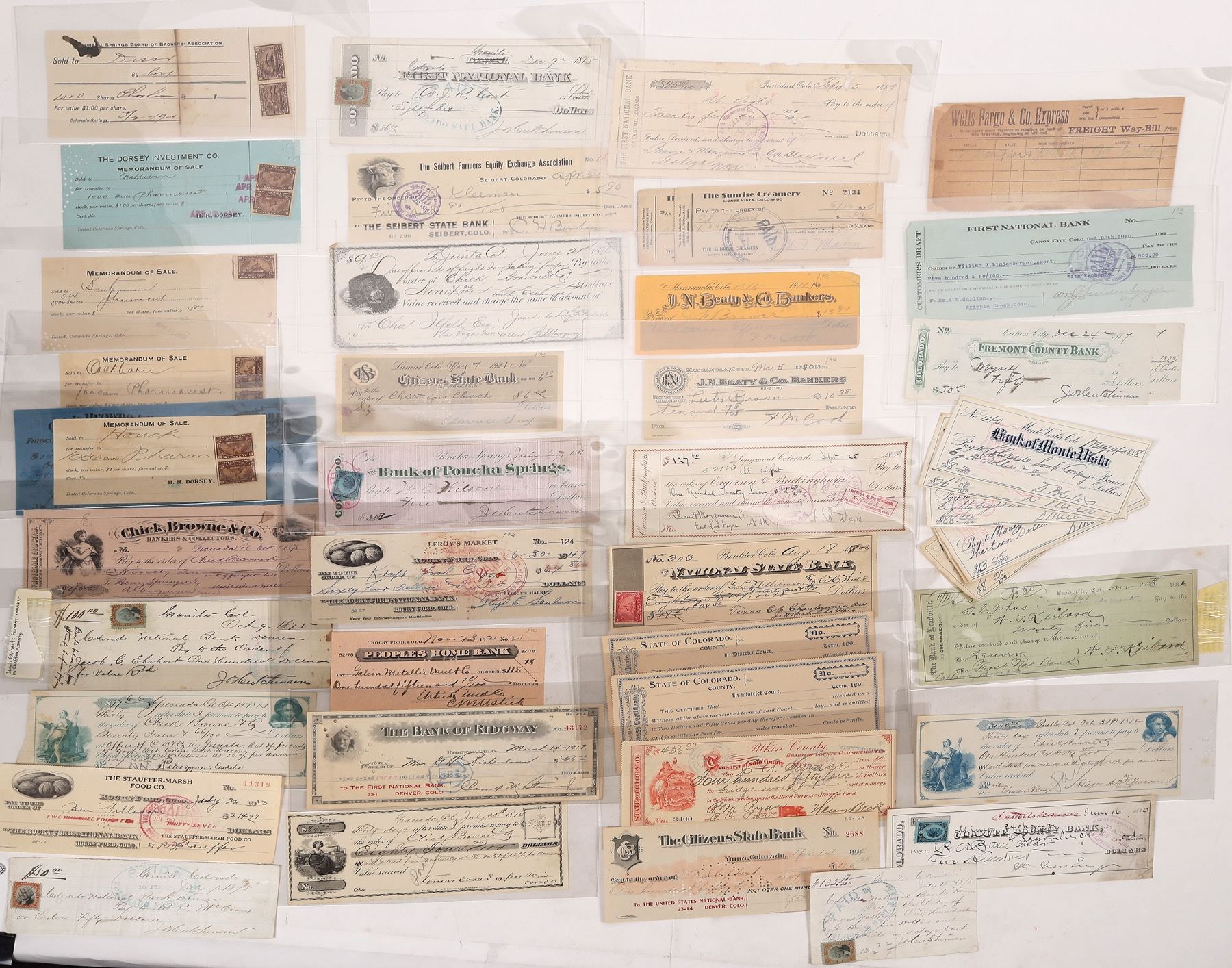About 50 Colorado small town checks. Rocky Ford, Yama, Granada, Seibert, La Junta, Amar, Poncha Springs, Ridgway etc. c. 1876-1933.