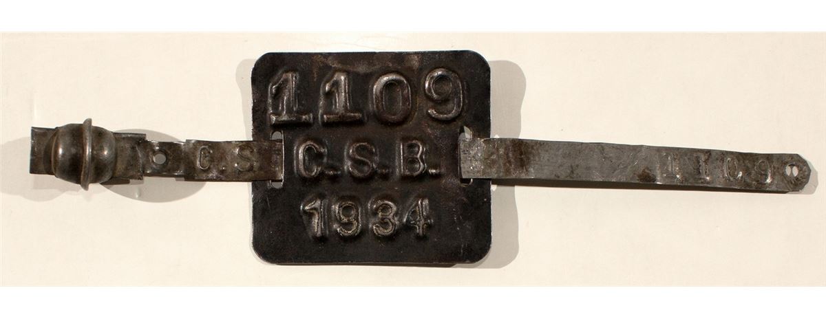 Seal number 1109. Back of metal strip says 'bicycle." 1934.