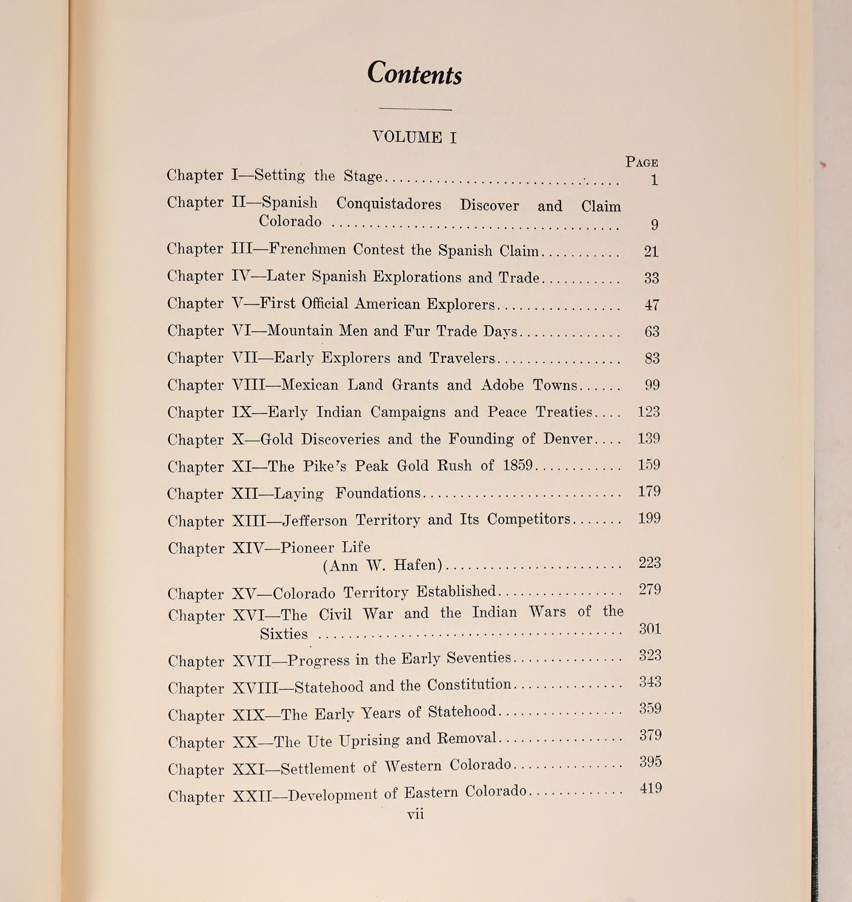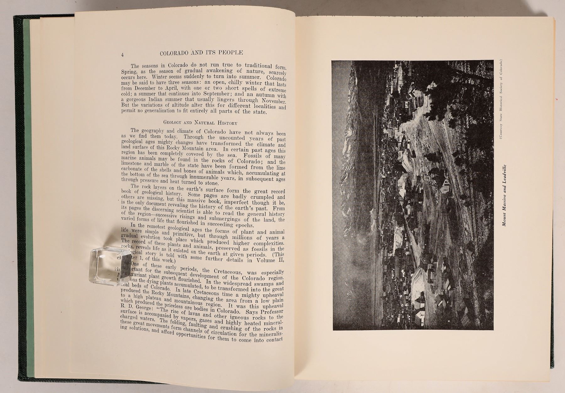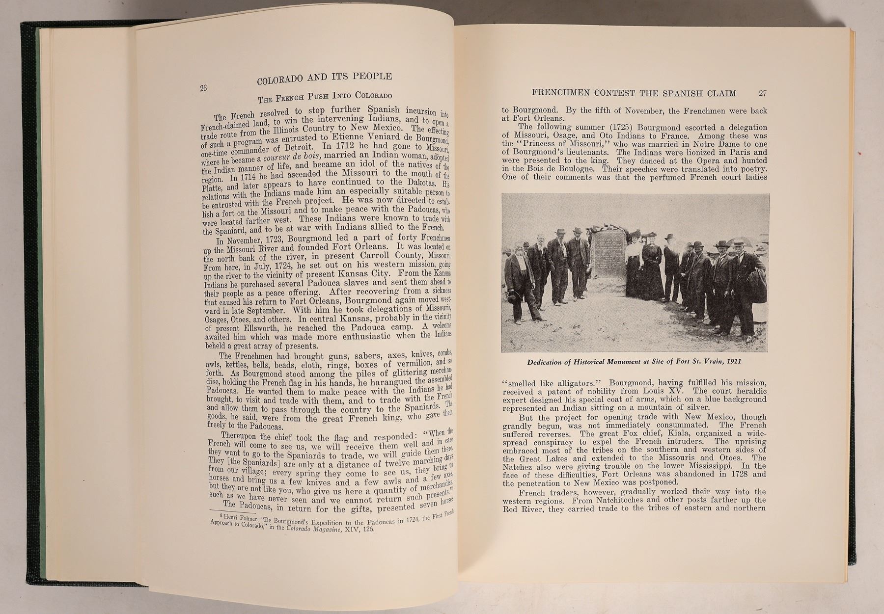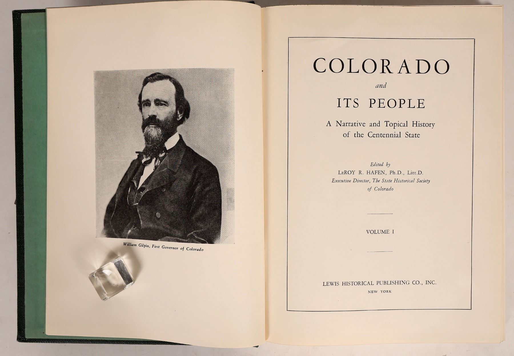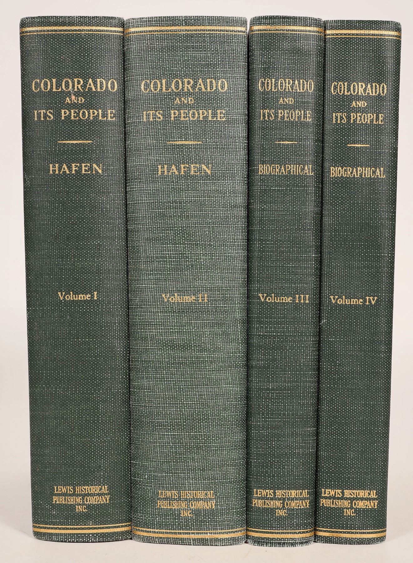 Colorado and Its People by Leroy F Hafen, 1948 1st edition, 4 volumes. Natural history, prehistoric people, agriculture, literature, notable people, land grants, explorers, pioneers, statehood etc. Colorado