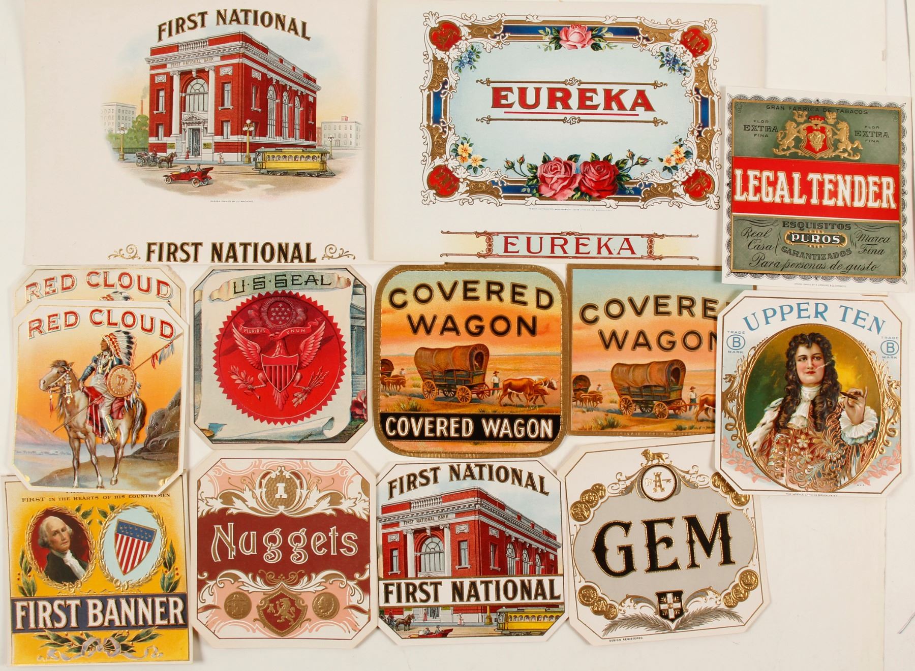 First Banner, 2 Red Cloud, 2 Covered Wagon, US Seal, 2 different First National, GEM, Legal Tender, Upper Ten, Eureka, Nuggets.