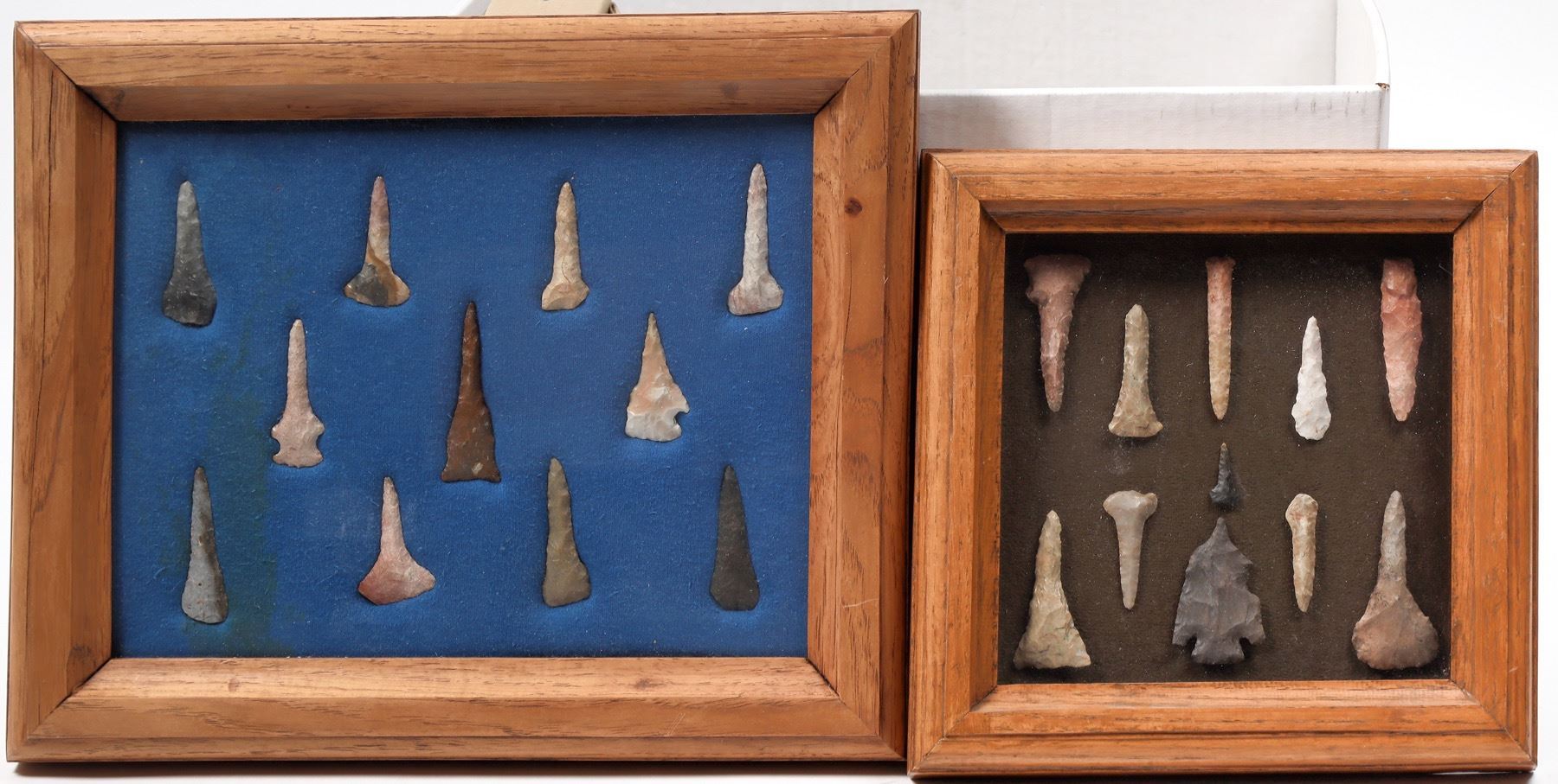 This lot contains 22 drill points in two display cases. Sizes range from 1 in./ 26 mm to 2.75 in./ 70 mm. From the Gary Bracken collection. Please see photo for details. Provenance: Gary Bracken Collection
