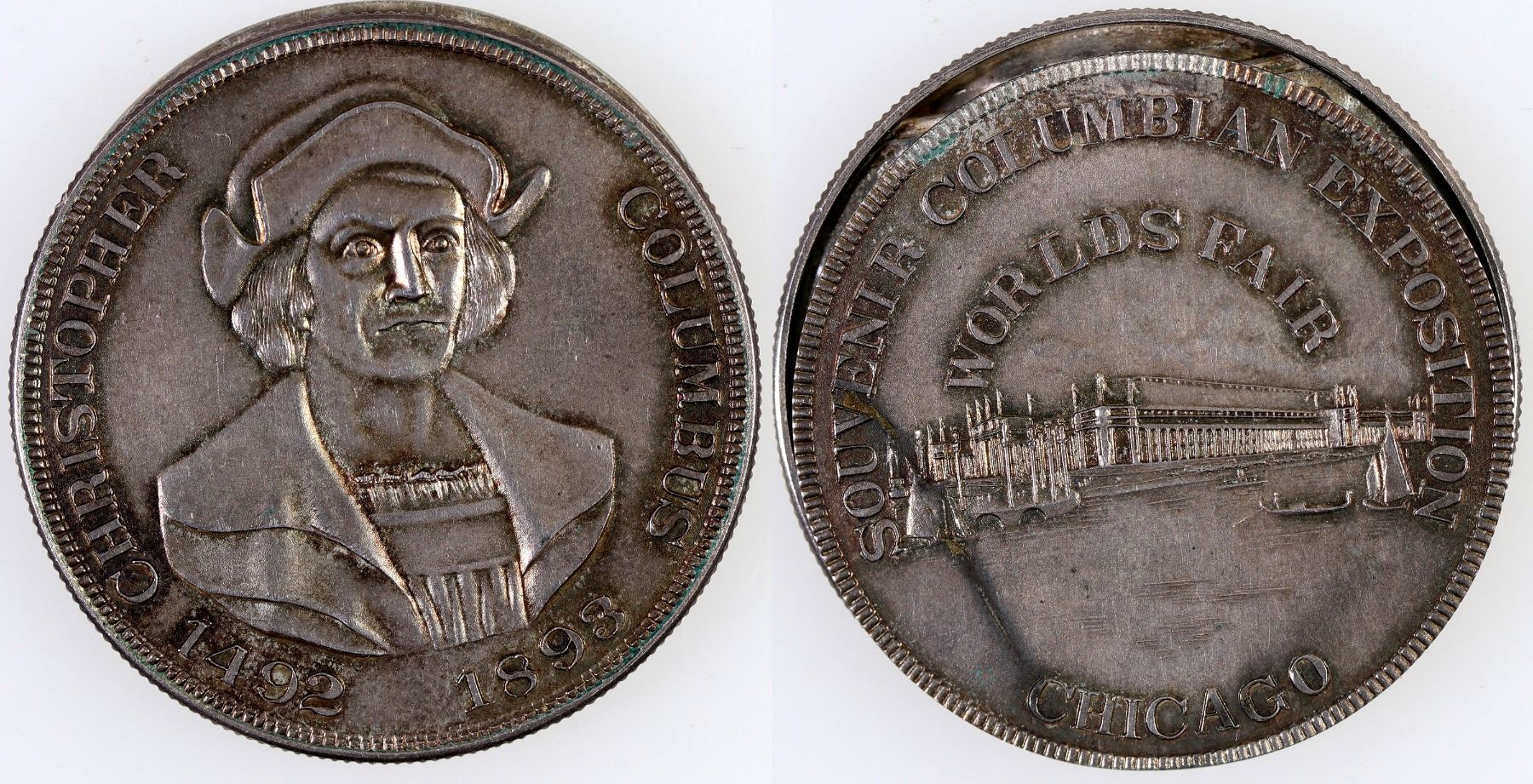 Christopher Columbus / 1492 / 1893 // Souvenir Columbian Exposition / Chicago. Hinged to accommodate a photo inside.37 mm.
