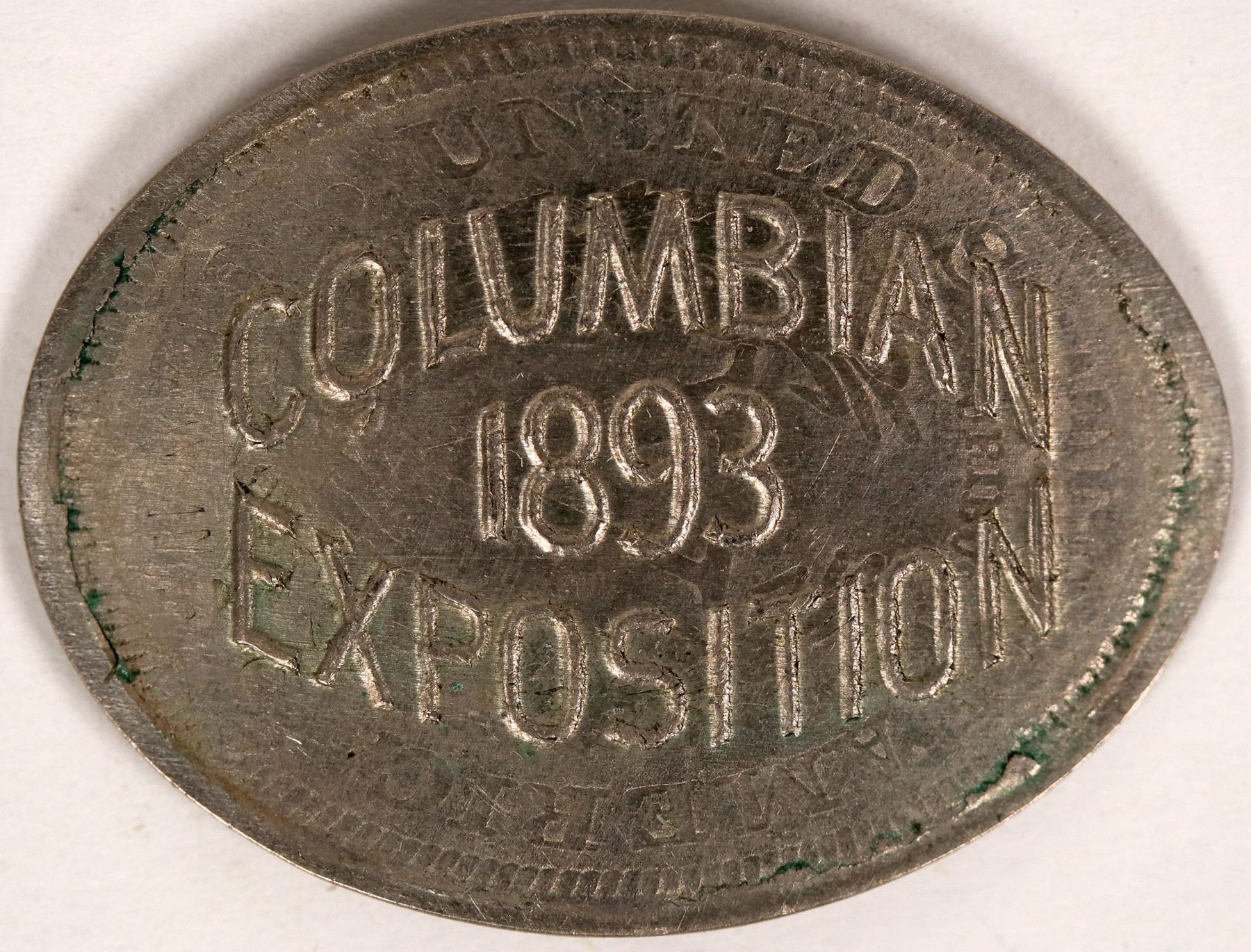 Rare elongated 1893 Liberty Nickel with the reverse stamped"Columbian / 1893 / Exposition".