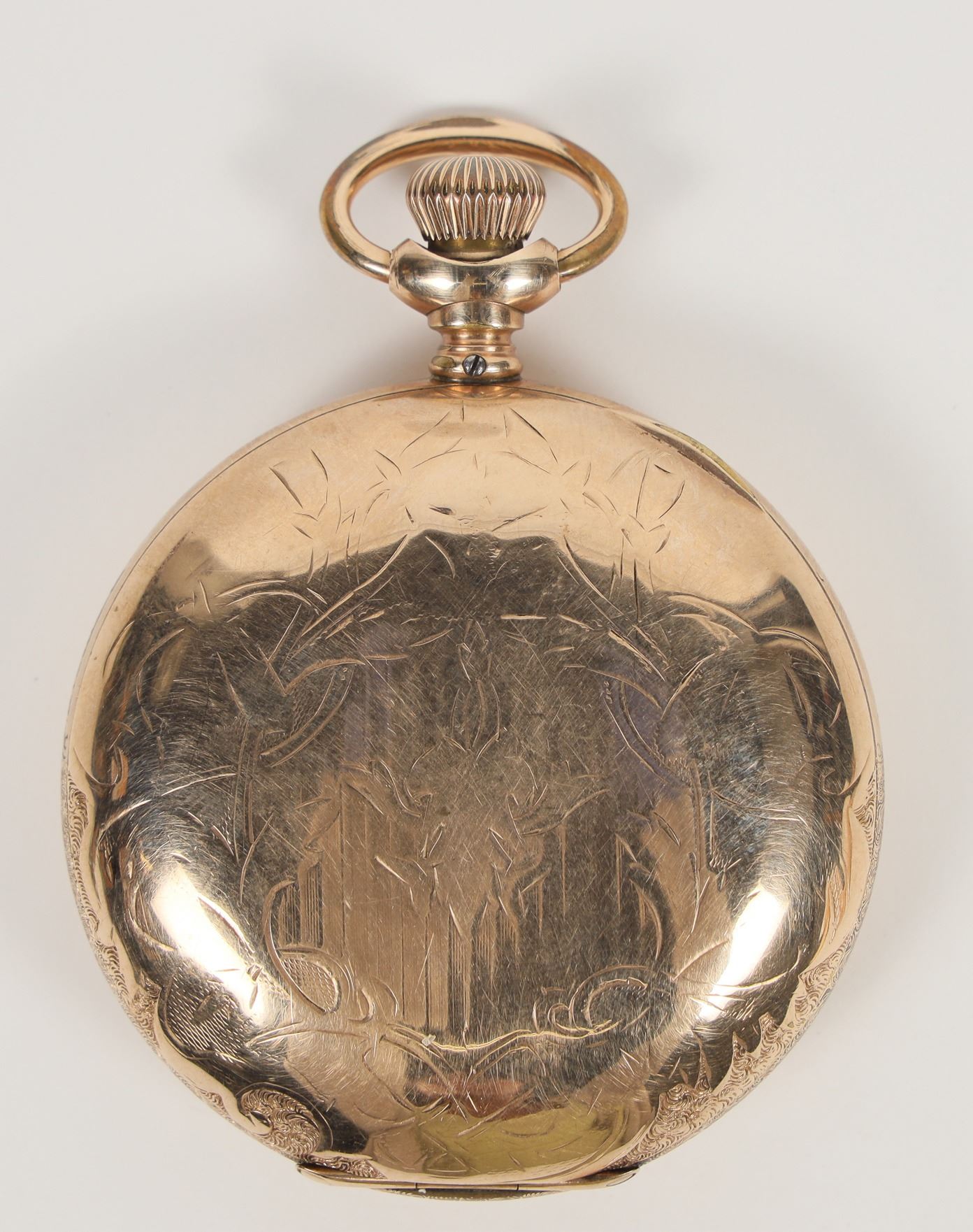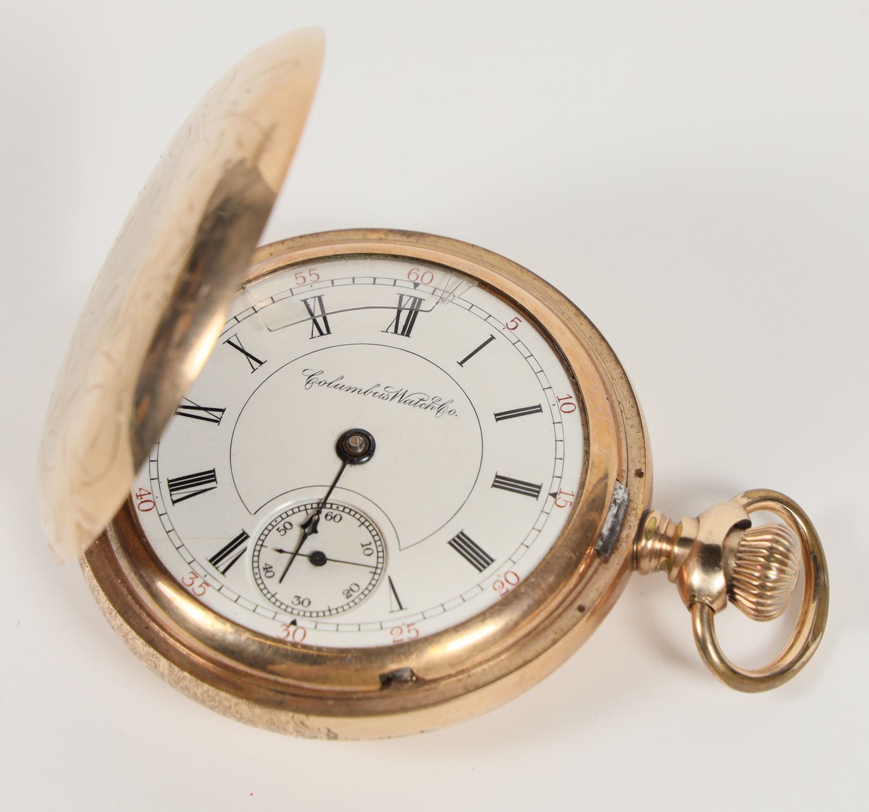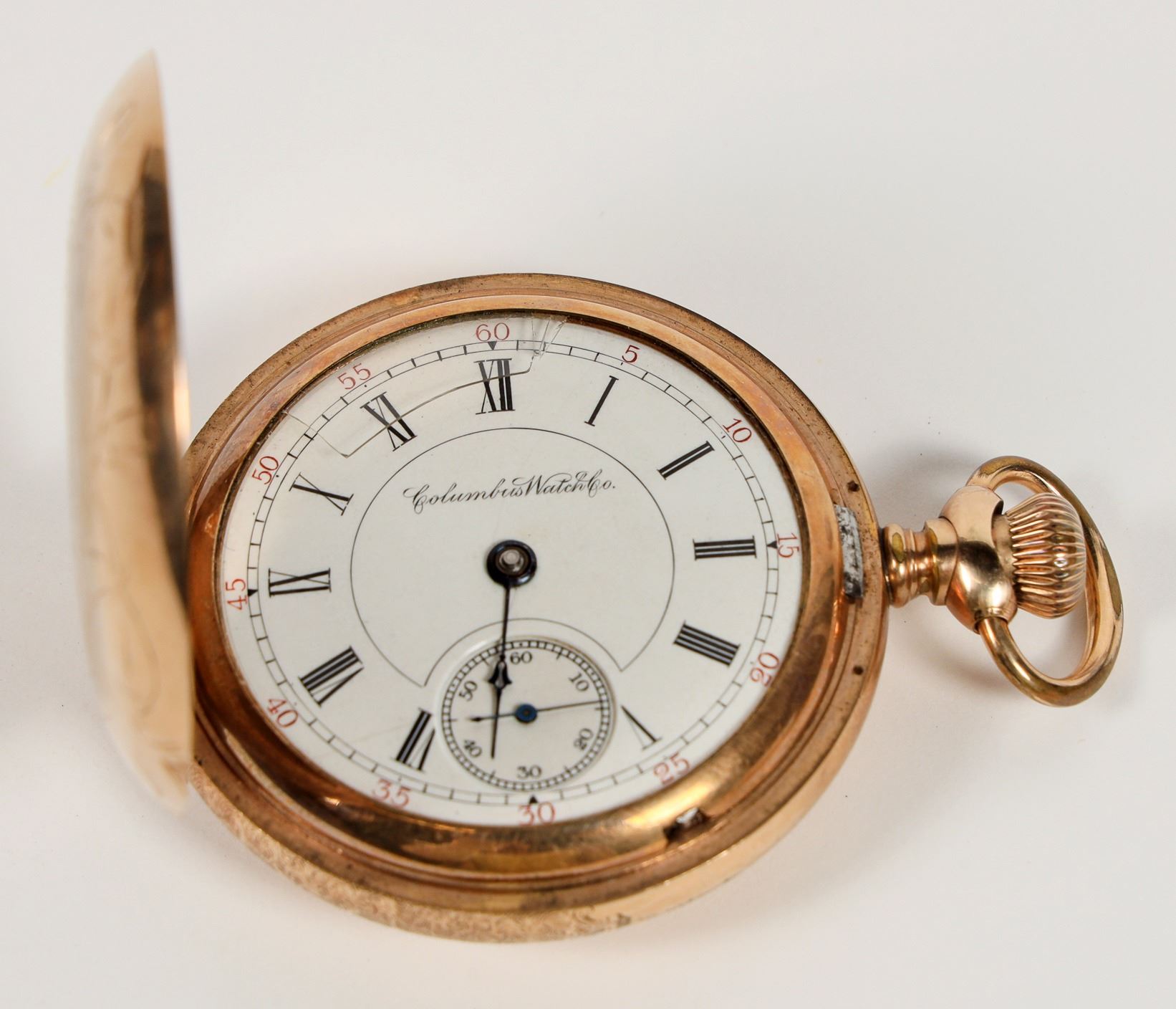 Columbus Watch Co. 16 Jewel Gold Pocket Watch 1884. Size 18 Keystone Gold filled case Sn 7573654. Guaranteed J. Boss 20 Yrs. Movement SN: 32801. Hunting case, gilt movement,