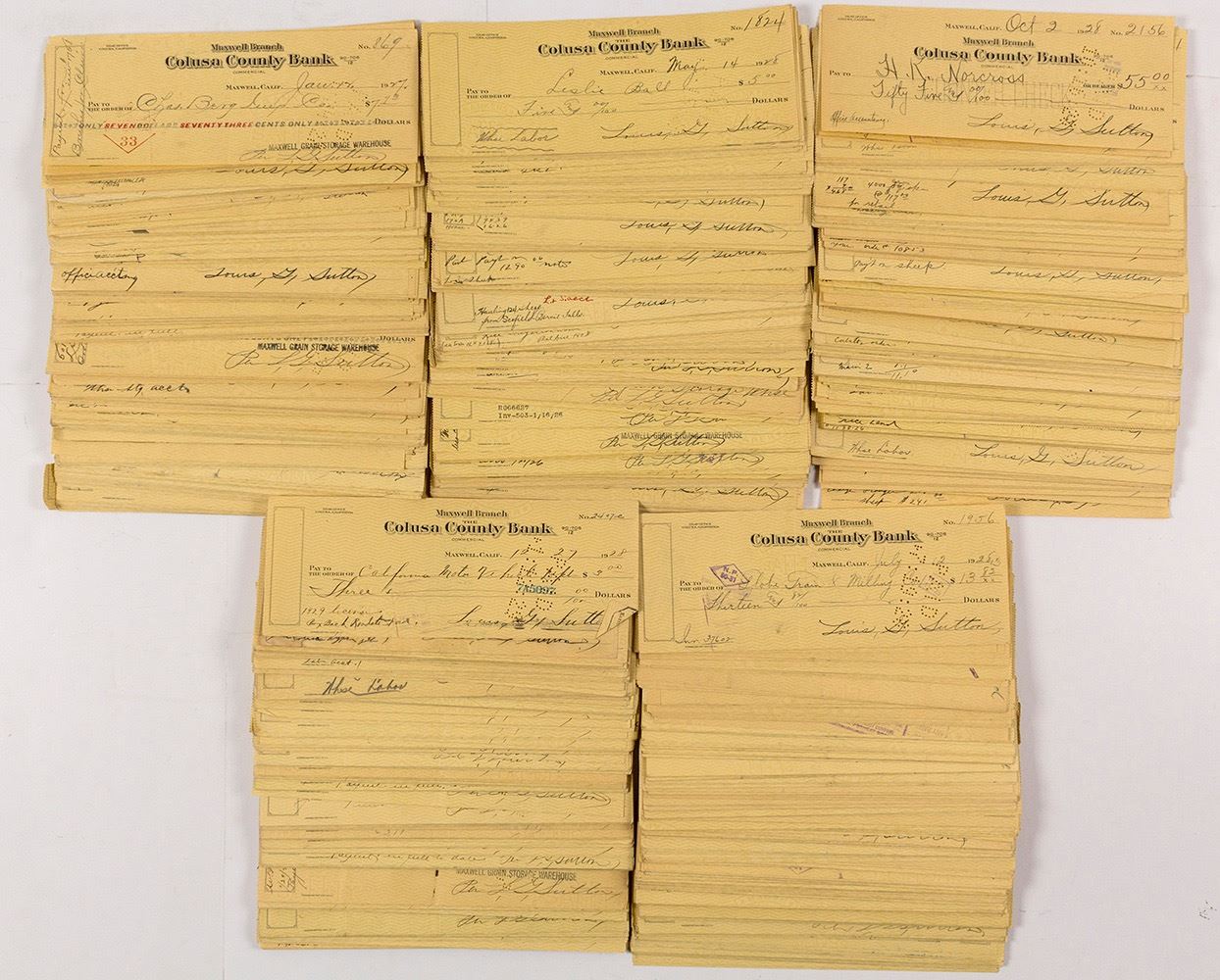 Colusa County Bank (Maxwell Branch) cancelled checks. Date: 1928 Location: HWAC# 56734