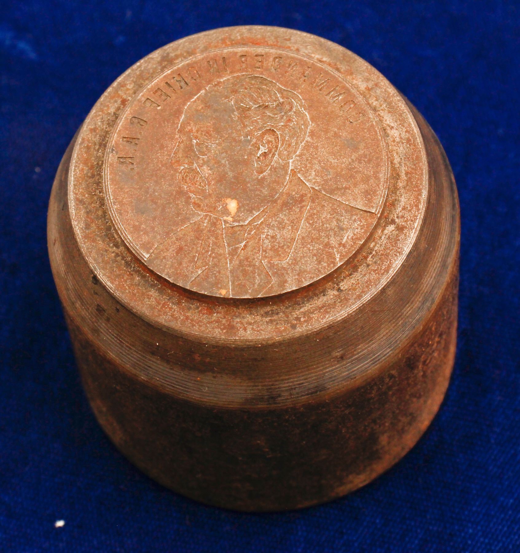 Grand Army of the Republic die of the Commander and Chief. There is no date or markings as to who the image on the dye is, but it could possibility be Albert Duane Shaw.