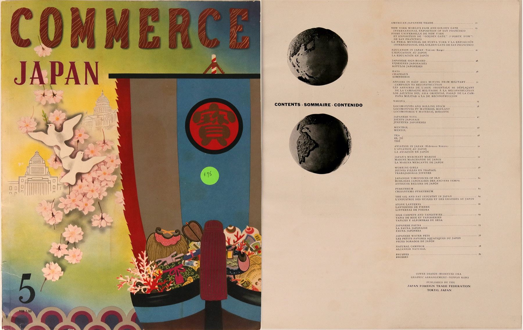 This is a book of Commerce introducing Japan published in 1939. Significant contributors are MItsubishi Trading Co. and the Japanese Electric Lamp Co. An interesting collection of trade and cultural history. This book is worth the art in fold-outs and photos alone. 94 pages.