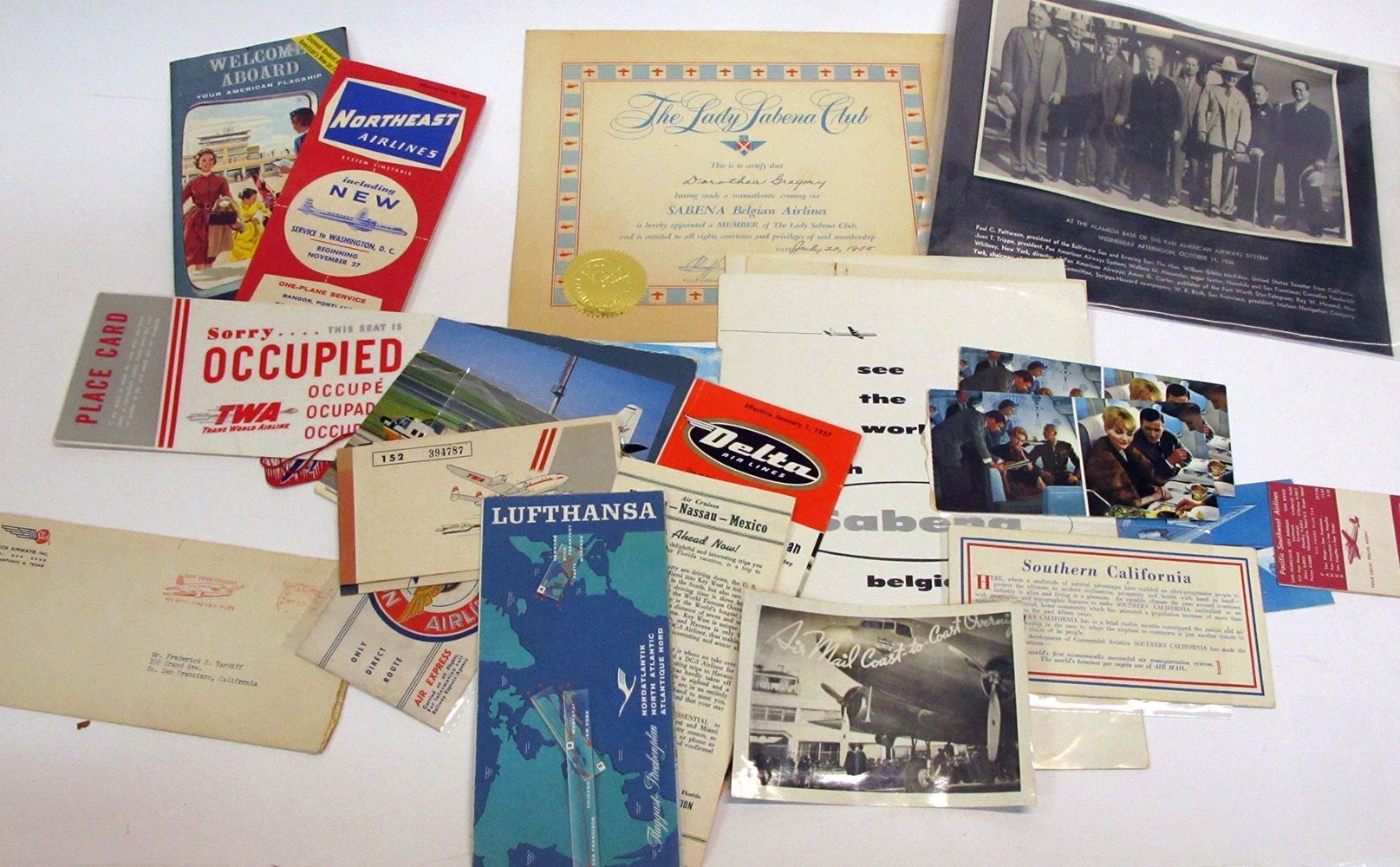 A Welcome Aboard pamphlet from American Airlines, dated 1960; Pamphlet of "See the World with Sabena Belgian World Airlines with beautiful black & white photos of Greece, Italy, Ireland, Israel, Austria. There are many more! Date: Location: HWAC# 55117