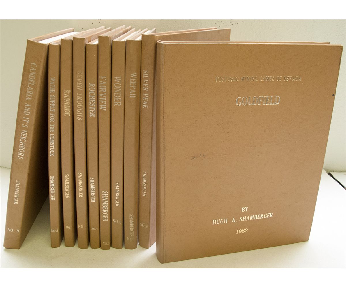 Set of ten books including: Virginia City, Wonder, Seven Troughs, Weepah, Silver Peak, Rawhide, Rochester, Fairview, Goldfield, and Candelaria. This is an extremey importnant reference set and a must have set for the serious Nevada book collector or historian.City: County: State: NVDate: