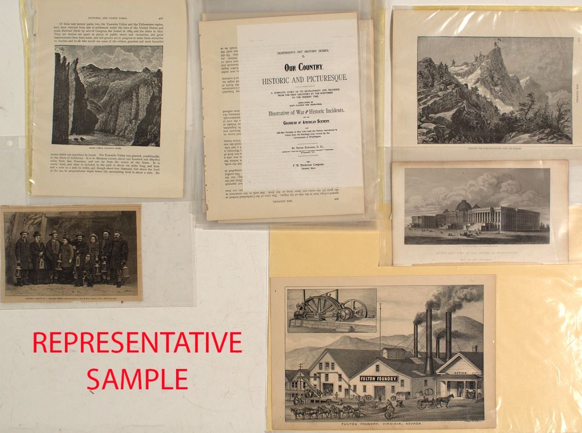 Comstock print collection with original prints from Harper's, Leslie's, etc. of all things related to the Comstock. c. 1870-1890. Approximately 30 pieces from the Comstock period, in excellent condition for the most part, and a great historical lot. State: Nevada City: Virginia City Date: FHWAC#: 40411
