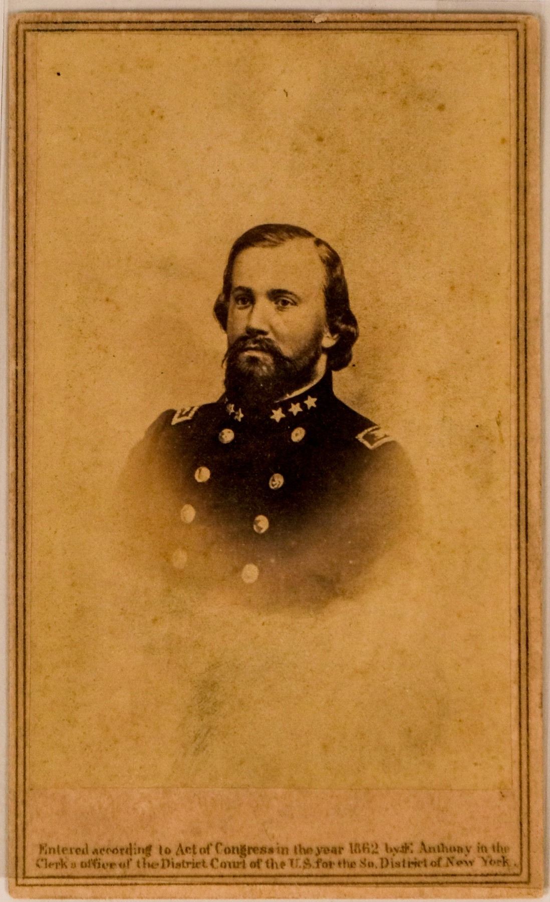 CDV card sepia photograph of Confederate General John Hunt Morgan, 1825-1864. His military career began in April 1862, when he raised the 2nd Kentucky Cavalry Regiment, fought at Shiloh, and launched a costly raid in Kentucky, which encouraged Braxton Bragg's invasion of that state. In July 1863, he set out on a 1,000-mile raid into Indiana and Ohio, taking hundreds of prisoners. But after most of his men had been intercepted by Union gunboats, Morgan surrendered at Salineville, Ohio, the northernmost point ever reached by uniformed Confederates. The legendary "Morgan's Raid", which had been carried out against orders, gained no tactical advantage for the Confederacy, while the loss of his regiment proved a serious setback. Morgan escaped from the Union prison. He was killed at Greeneville, Tennessee, in September 1864.