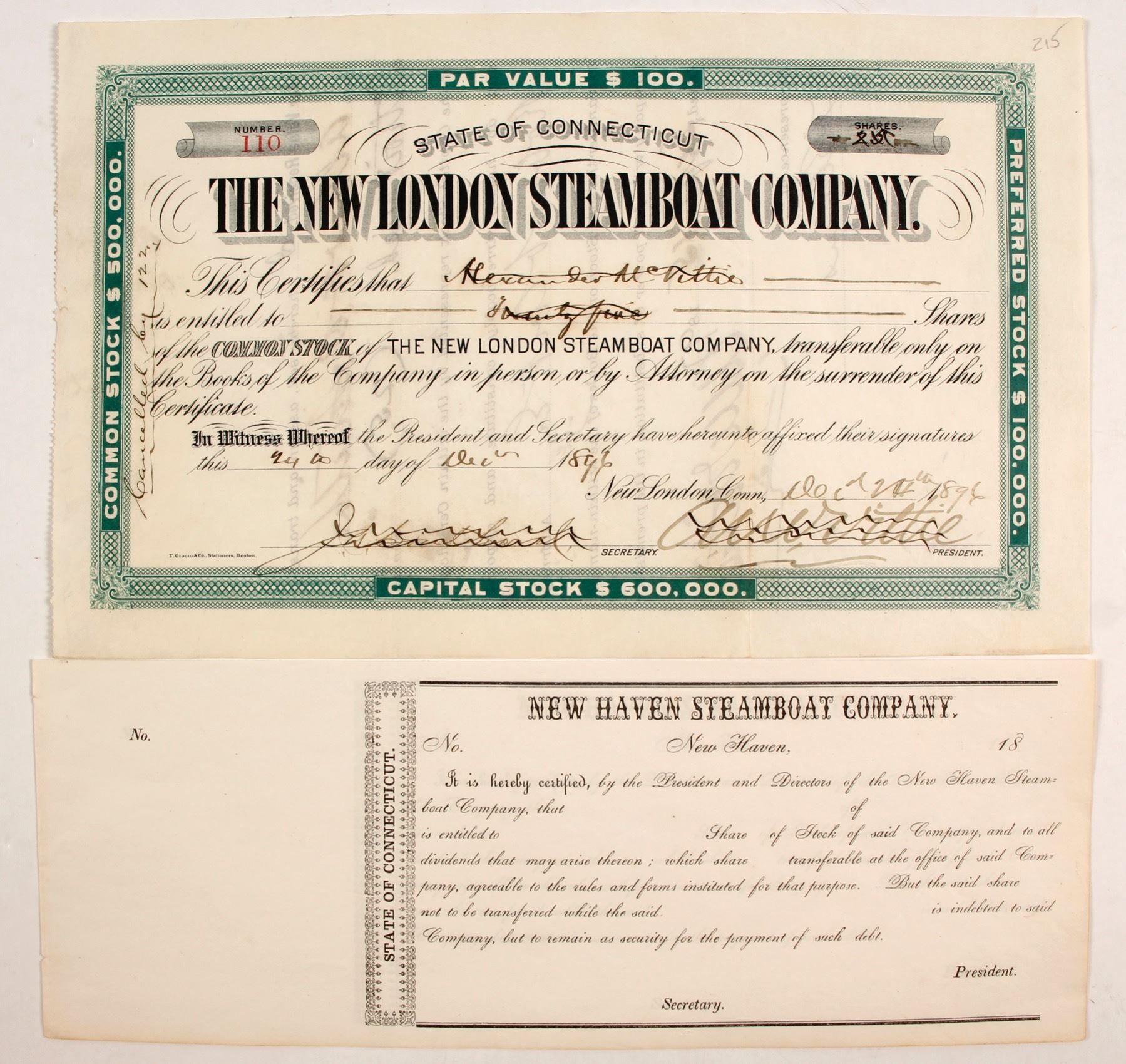 I/C #110 25 shares 1896 signed by President illegible. 1896. Unissued New Haven Steamboat Co stock receipt. Prag Collection. State: Connecticut City: Date: 1896 HWAC# 83359
